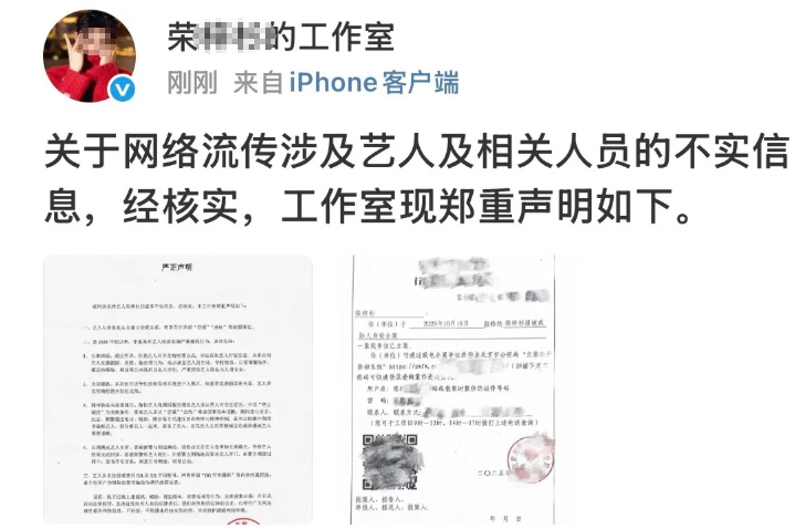 所以荣某某工作室在女方发文后发出了郑重声明。