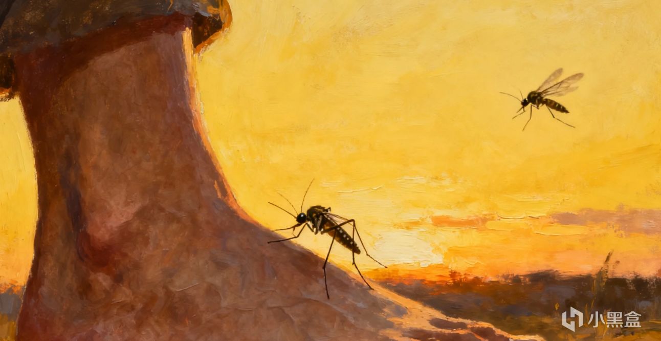 黄昏将至,它最喜欢在此时猎食。虽然你听见它伴随着嗡嗡声渐渐靠近,但是随后它却不声不响地落在了你的脚踝上。