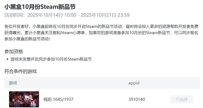 原本还抱有侥幸心理,但咨询业内前辈才知道,小黑盒新品节的参与机会也是“一生一次”,确实,为了公平,非常合理。