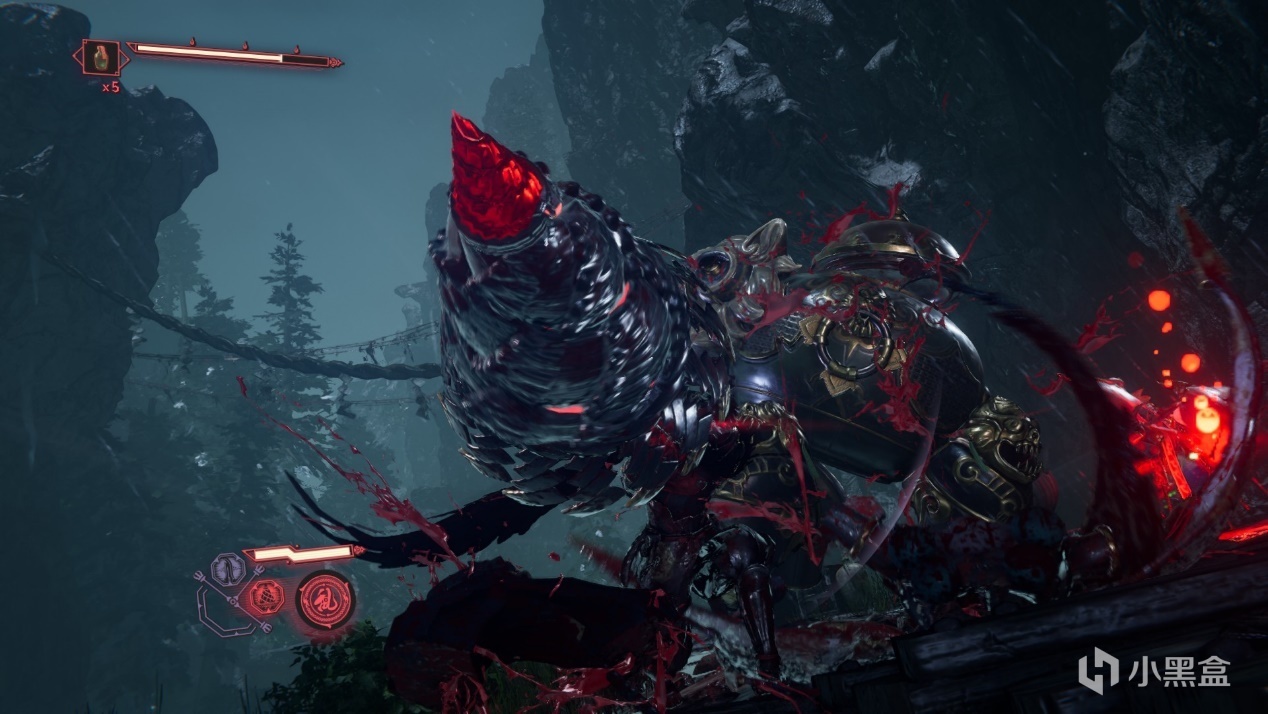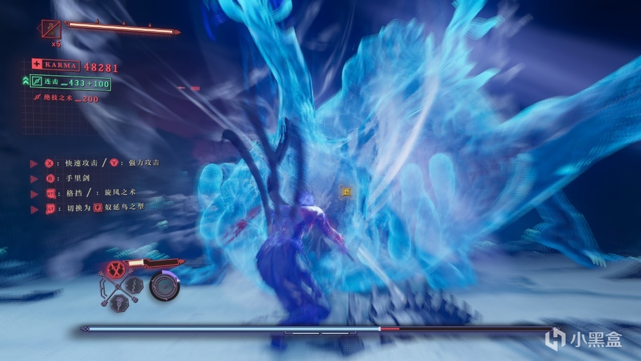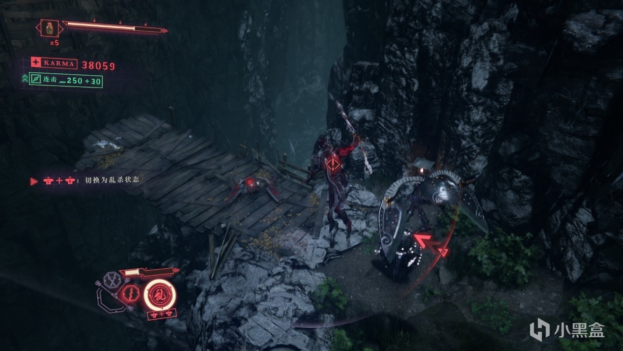 相击和弹反在鸦之型武器和奴延鸟型武器的状态下都可以使用,收益最大也是最难触发的自然就是奴延鸟状态下了。弹反,相击,完美闪避都可以触发反击手段,特别是打精英怪和boss的情况下推荐多多使用。同时游戏还引入了一个乱杀机制,可以理解为斯巴达之怒,同时按ls和rs键开启,不过乱杀状态并非无敌,只是攻击提升,但是可以大范围aoe清杂兵。