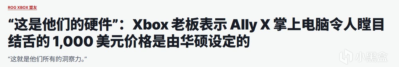 'This is Their Hardware': Xbox Boss Says Ally X Handheld's Eye-Watering $1,000 Price Was Set by Asus信息來源