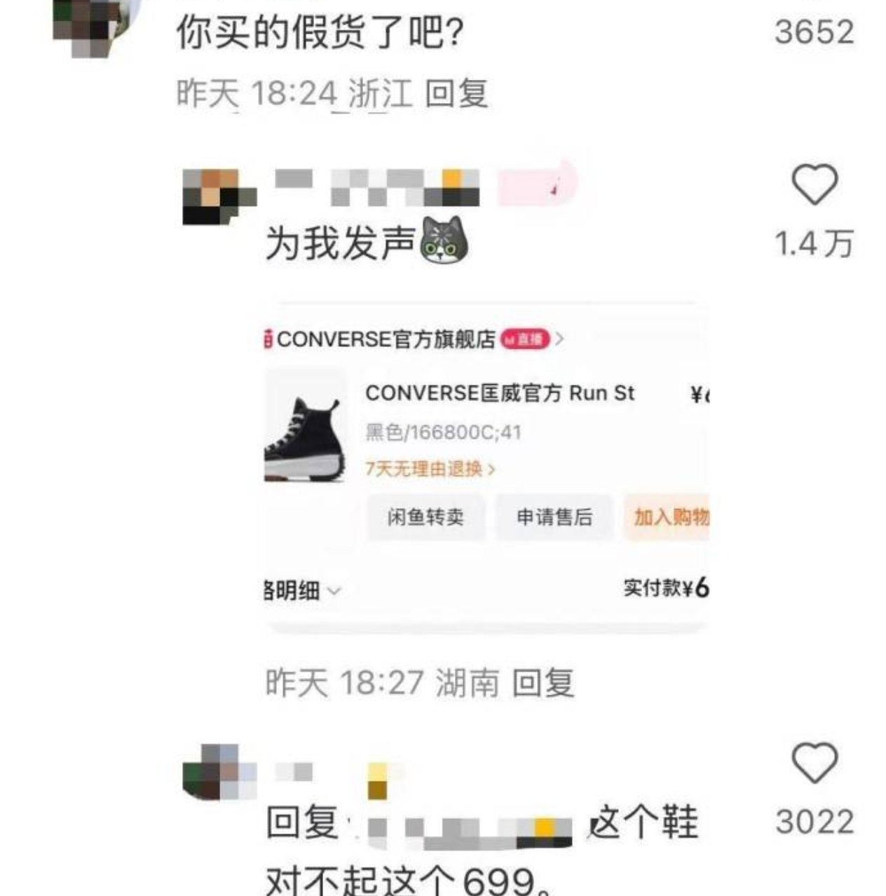 面对评论区关于“买到假货”的质疑,该网友晒出购买记录证实,这双型号为166800C的鞋购自官方旗舰店,实付金额699元。工作人员解释称该鞋款采用环保胶粘合,若长时间在水中浸泡可能出现脱胶情况,建议避免在雨天穿着,清洗时使用中性洗涤剂。