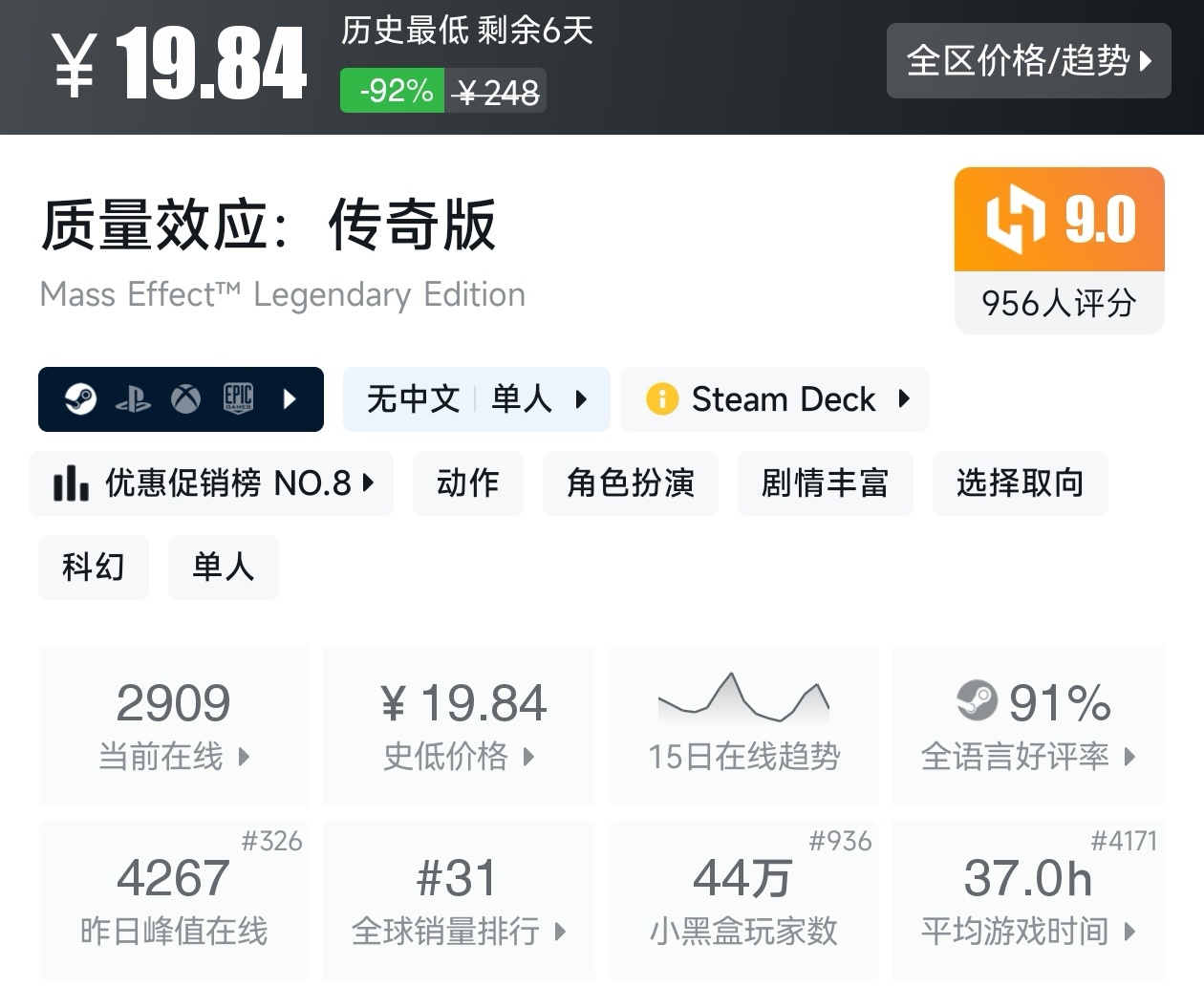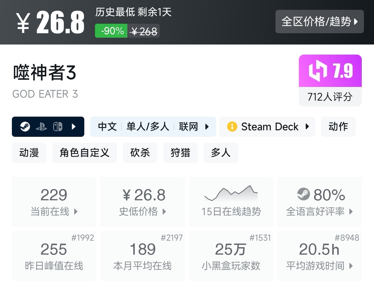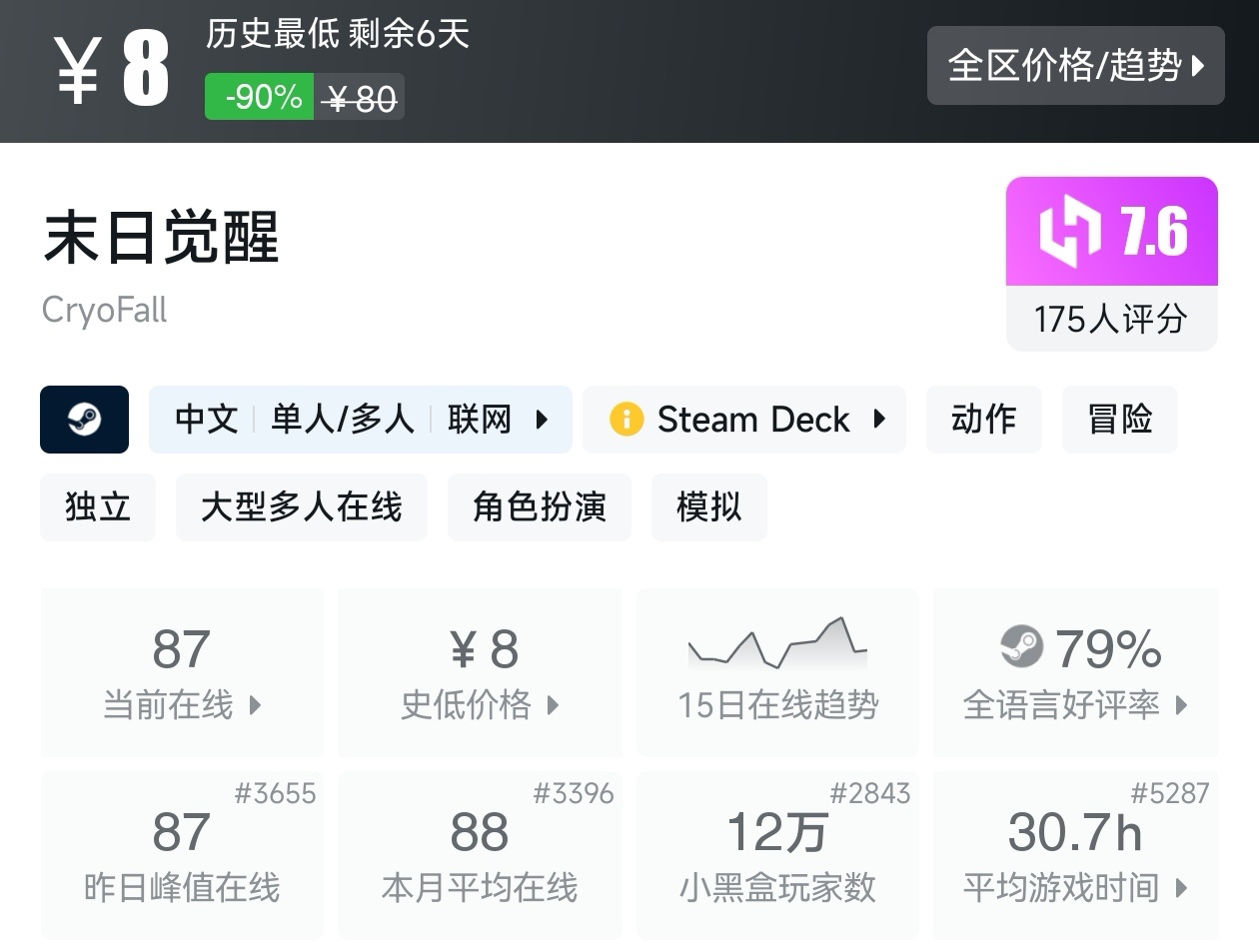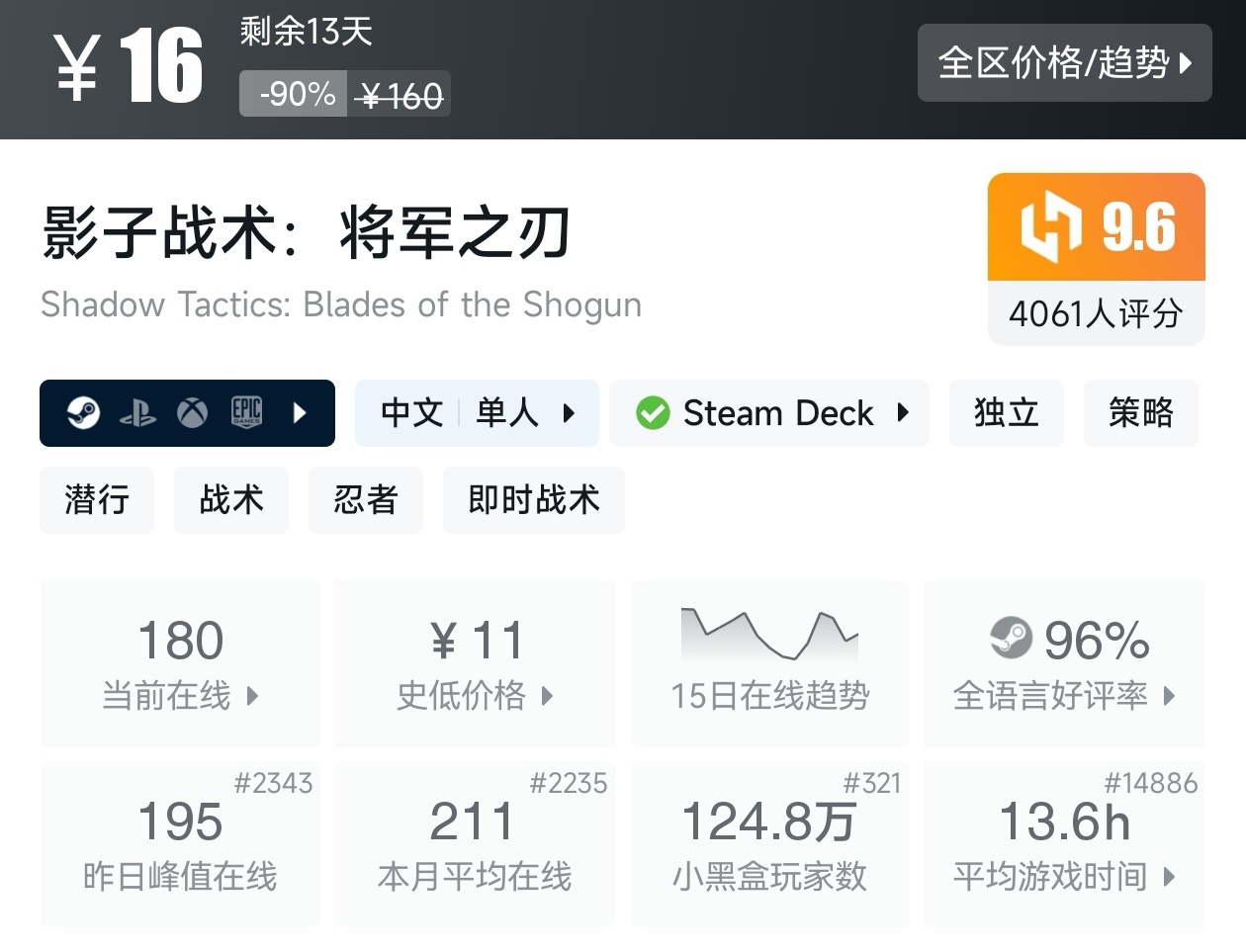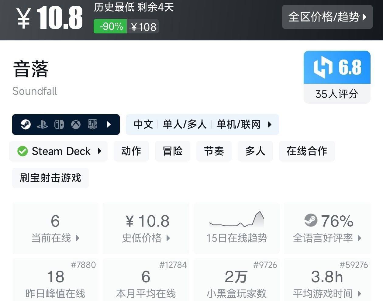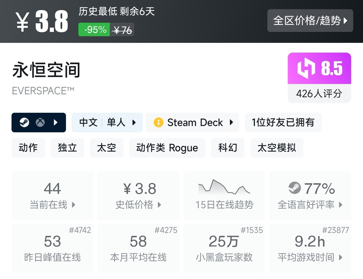 时隔几个月游戏才一折史低,很建议买,因为游戏体量很大。