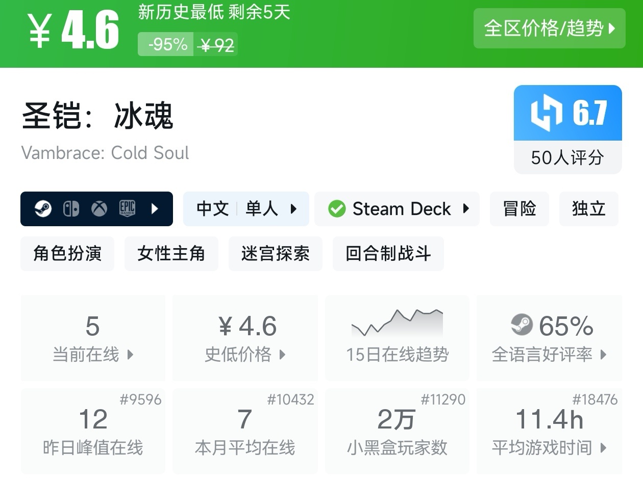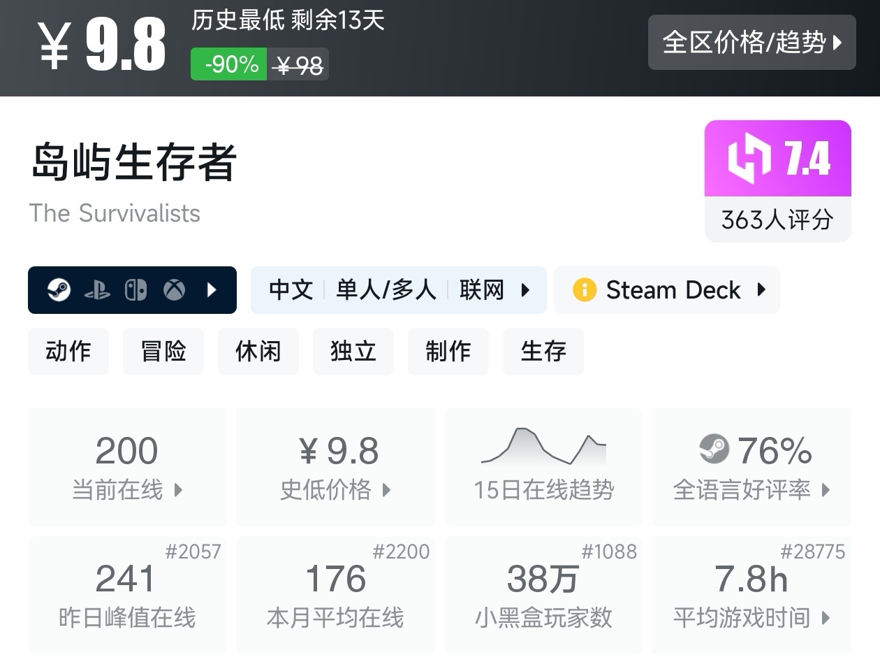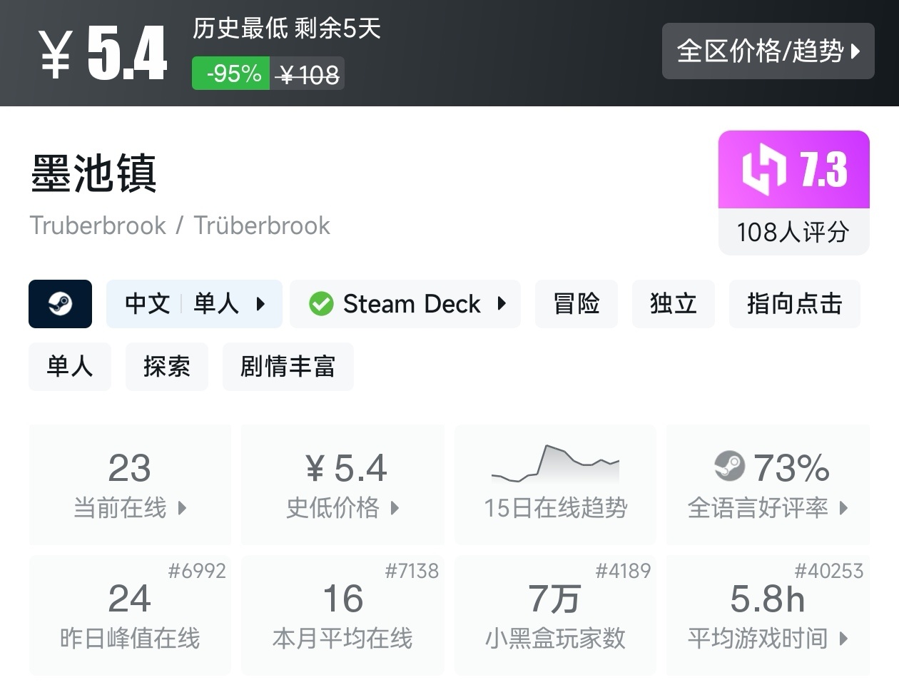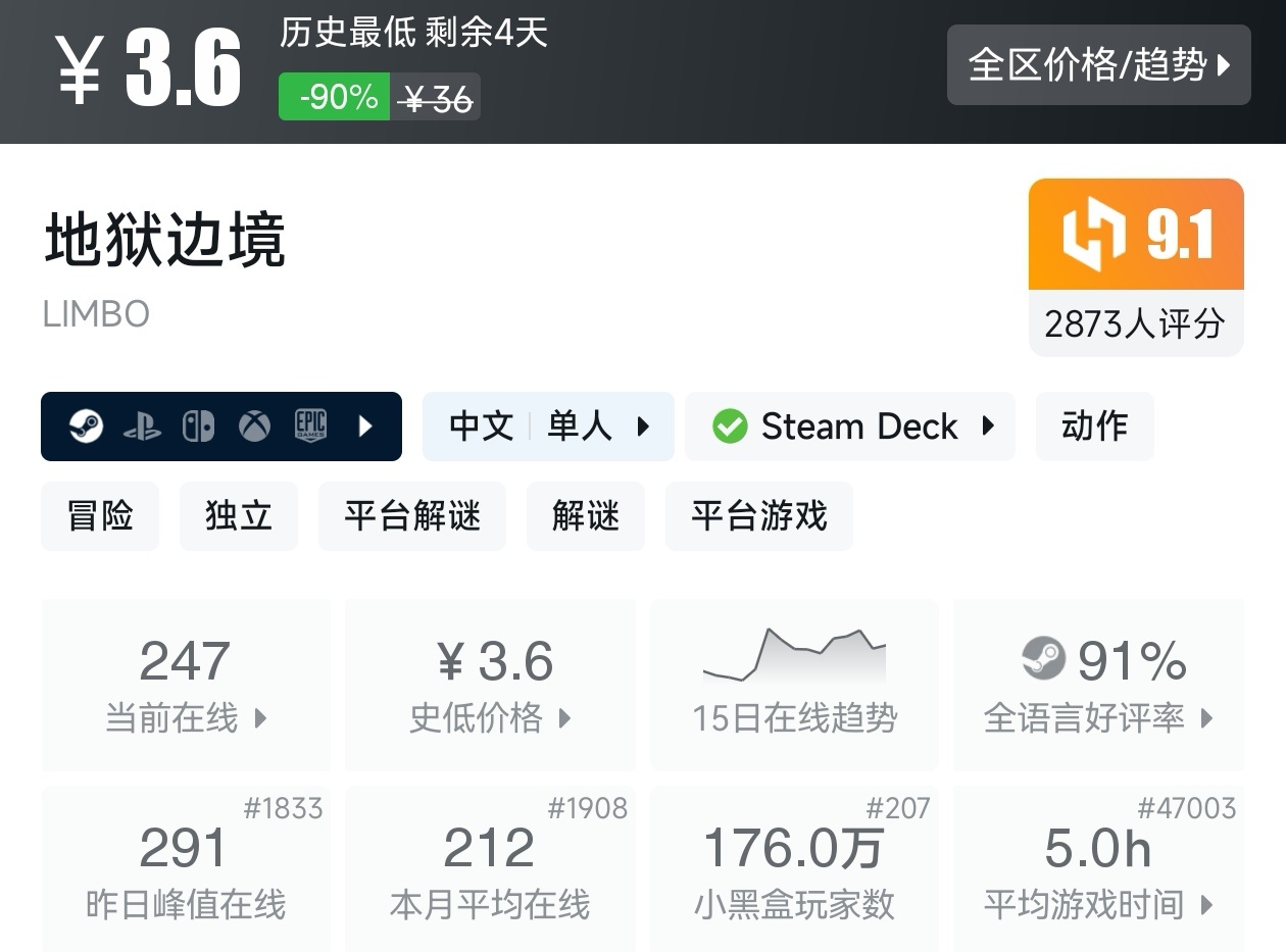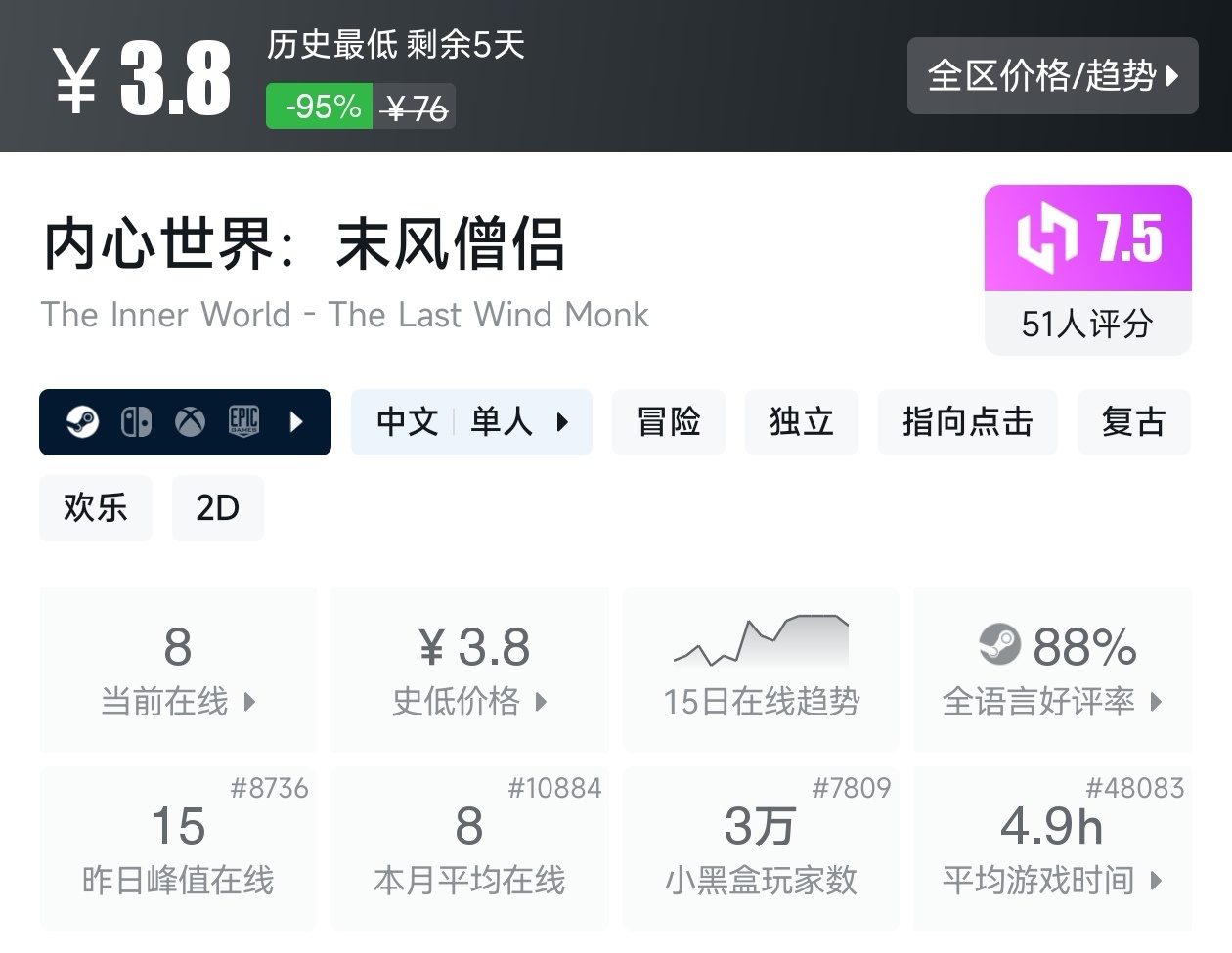 时隔几个月游戏才一折史低,很建议买,因为游戏体量很大。