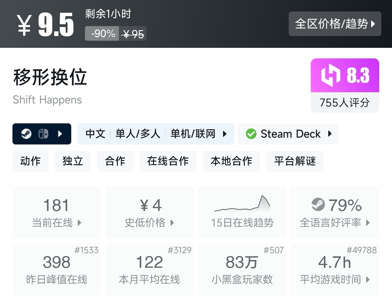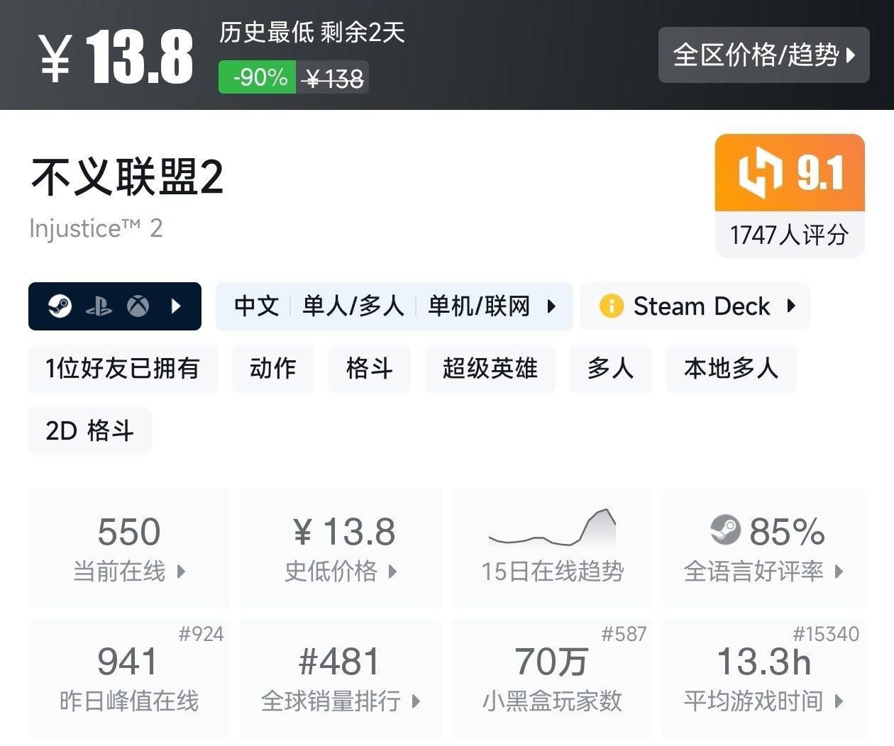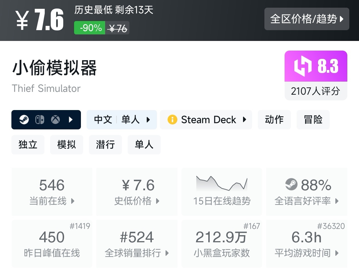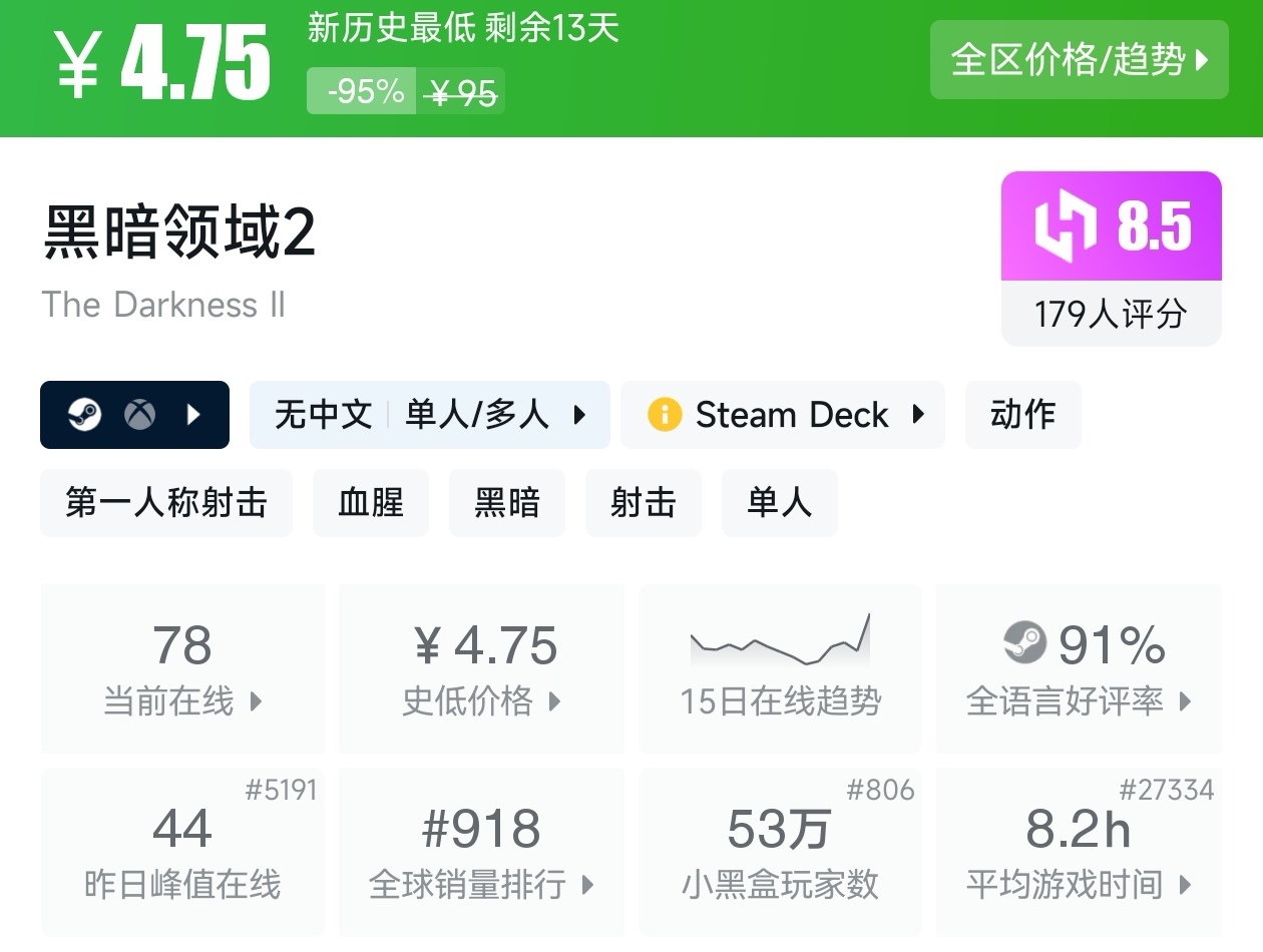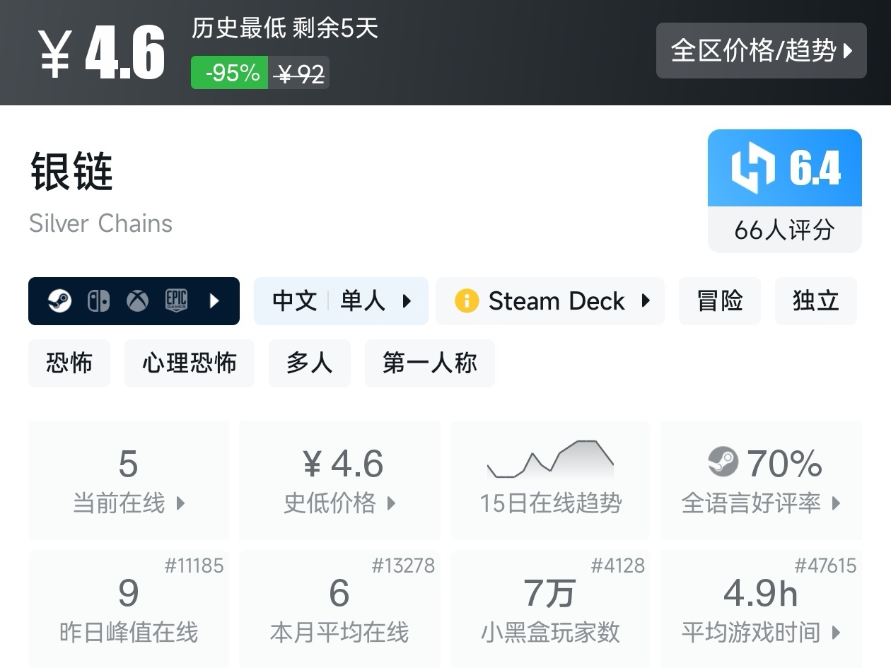时隔几个月游戏才一折史低,很建议买,因为游戏体量很大。