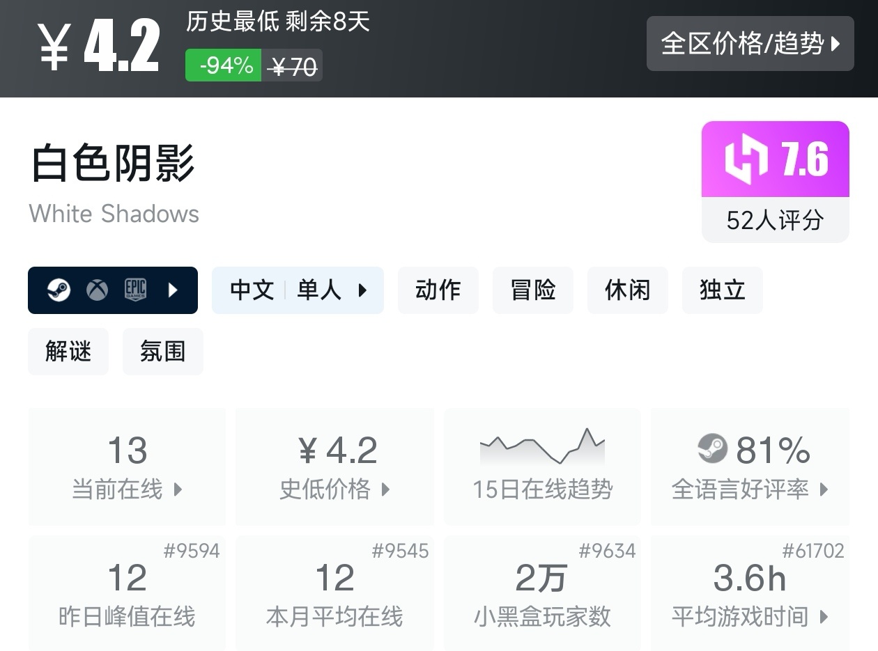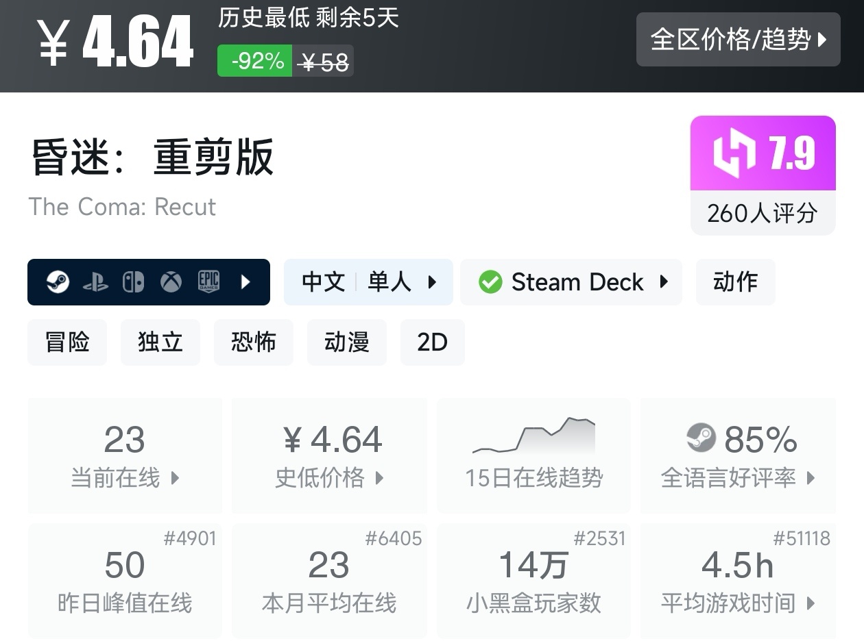 以上就是这期的折扣汇总,几个涵盖了近期所有的一折游戏,这些足足用了我一个小时。