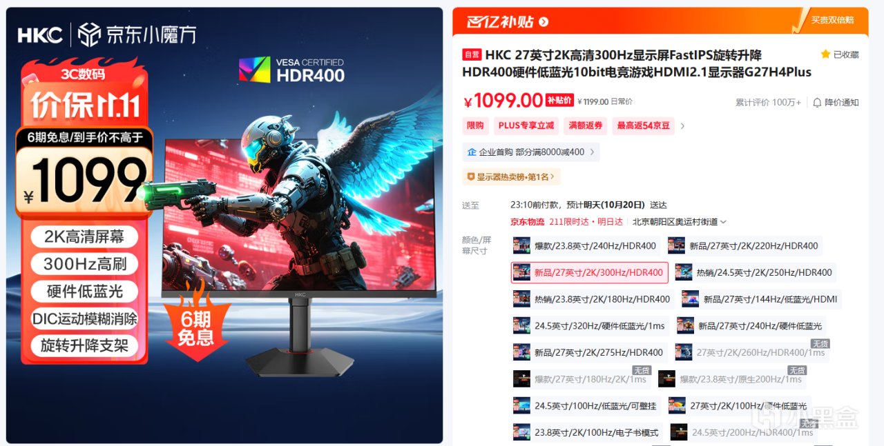 价格:国补后1104 屏幕大小:27英寸