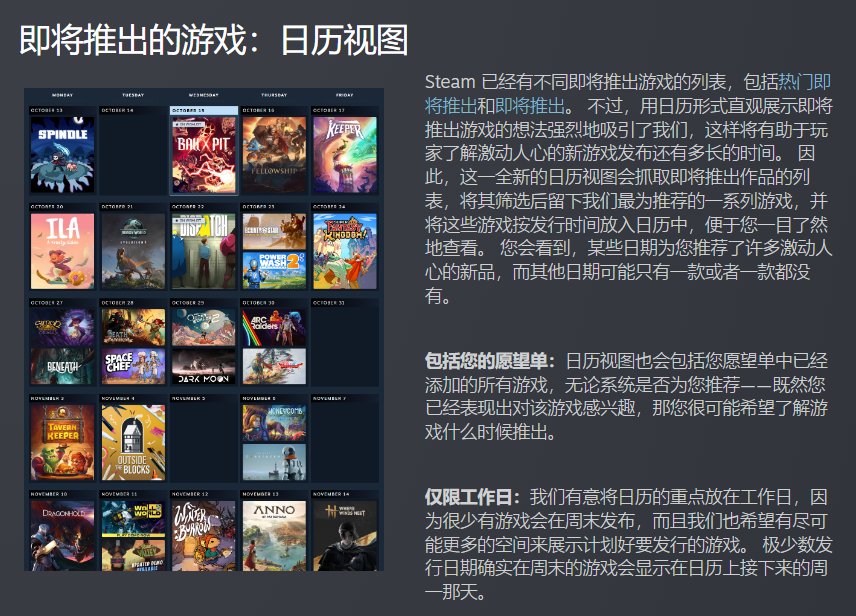 Steam今天宣布推出全新商店功能“个人日历”,该功能已作为Steam实验室的实验进行推出。