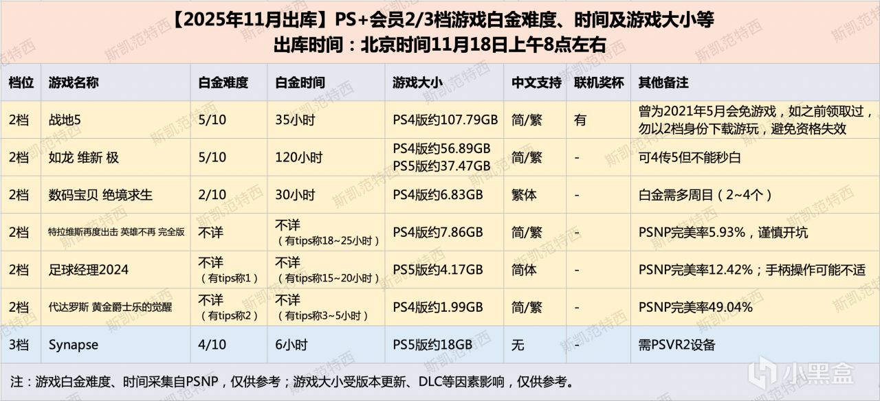 【25年10月出库】PS+会员2/3档游戏白金难度、时间及游戏大小等