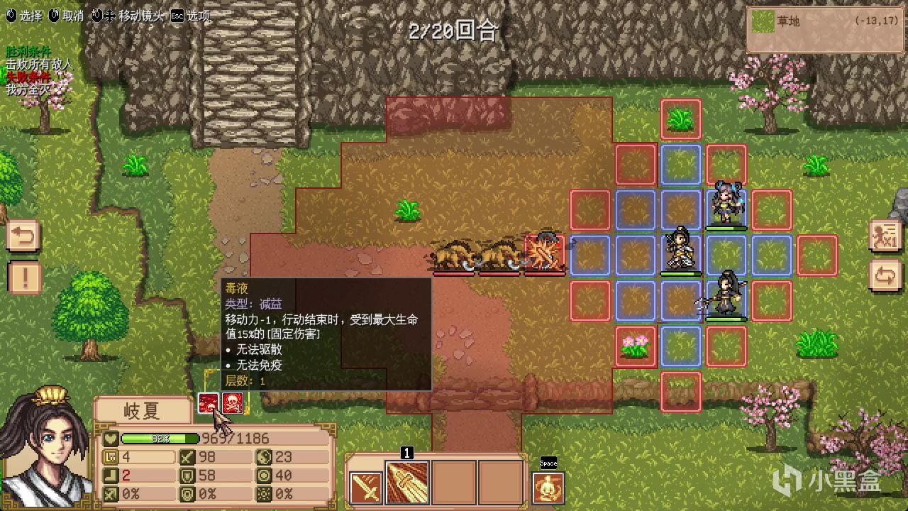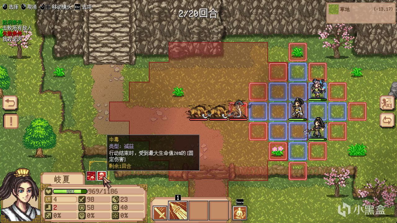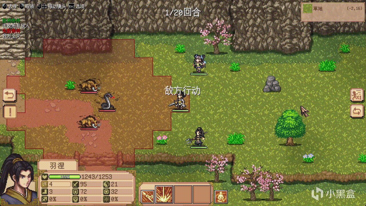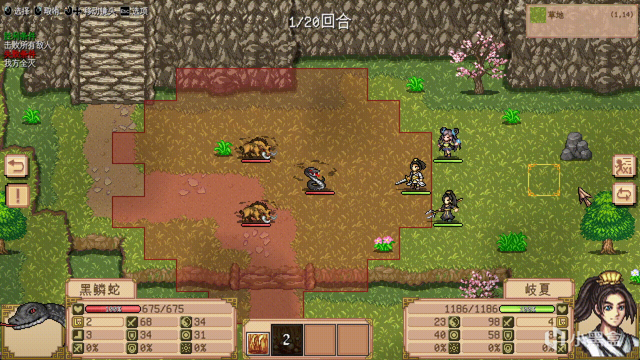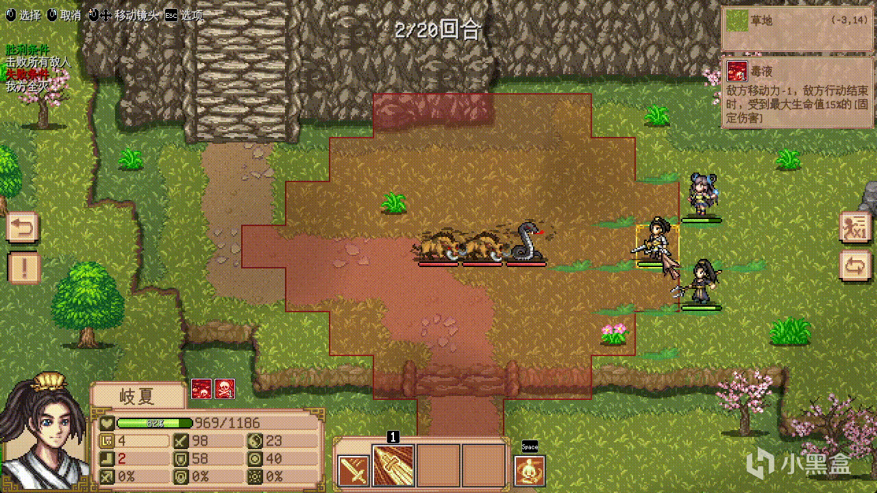 那么解法就很简单,开局第一回合,角色走位拉开距离,间隔2格以上就不会触发黑鳞蛇的“喷毒”了。