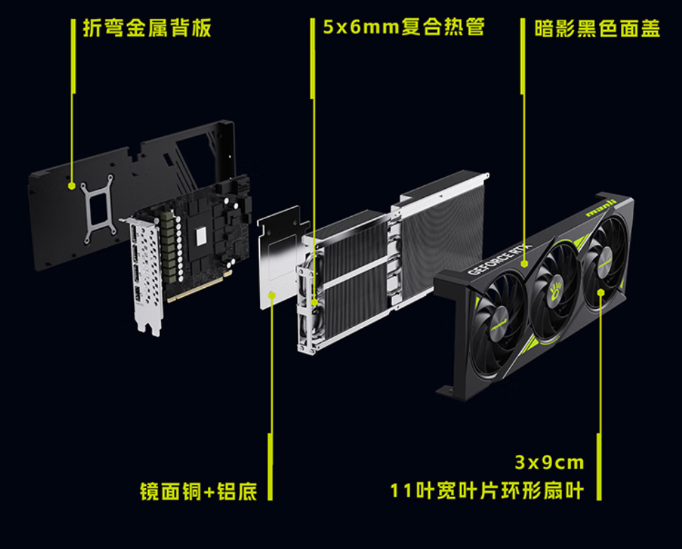 铭瑄在显卡方面积累越来越扎实。电竞之心的模具大幅改进,加入ARGB灯效(虽不支持5V 3针接口,但有控制按键),散热采用三根镀镍热管,背板为大面积金属材质,辅助散热。