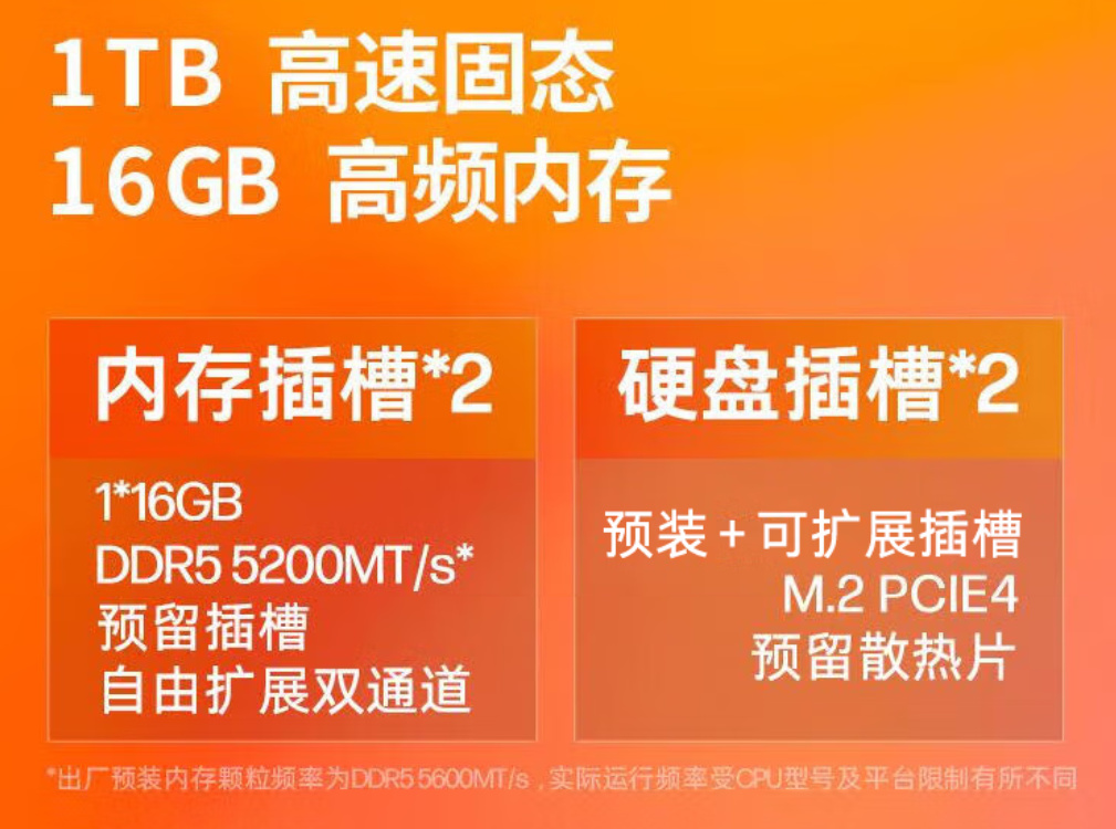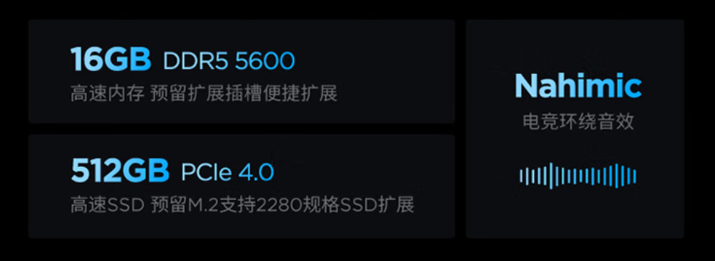 内存16G DDR5-5600,硬盘512G,预留2280拓展位。