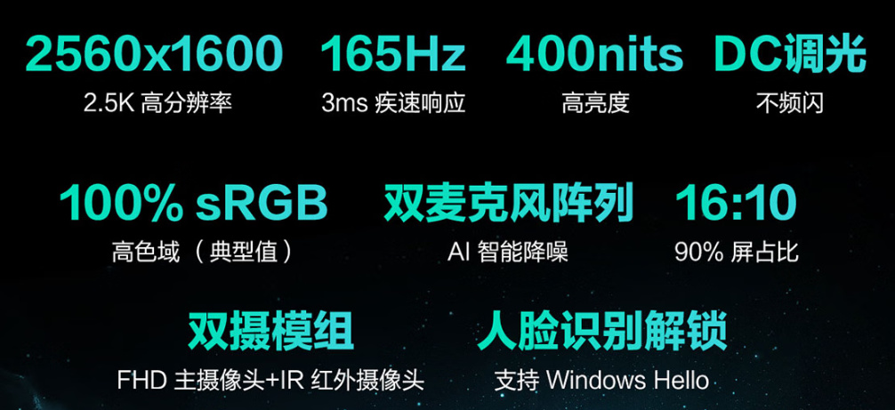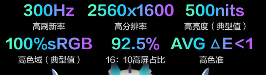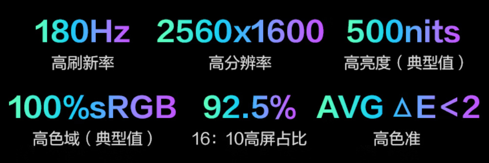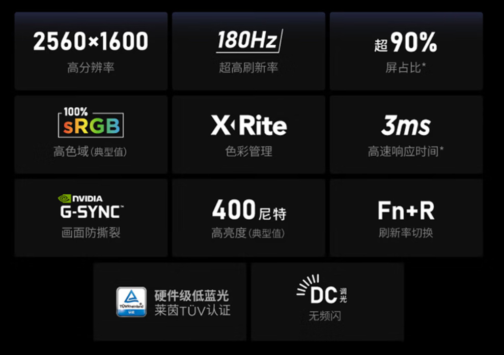 2K 180Hz屏,400尼特亮度,带DC调光、莱茵硬件级低蓝光认证,屏幕不便宜。