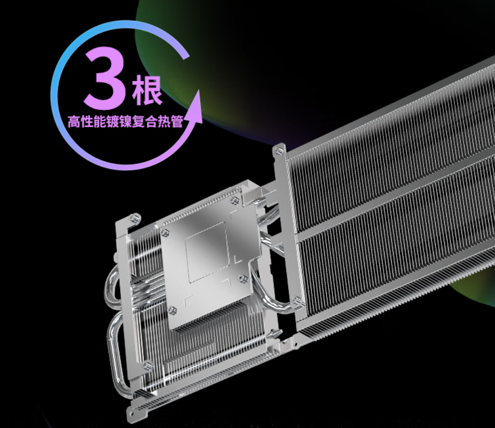 散热系统为两根镀镍6mm热管,三个9cm风扇支持智能启停。供电为4+2相,支持小幅超频,但超频提升有限,真要性能还是得上5060Ti或5070。