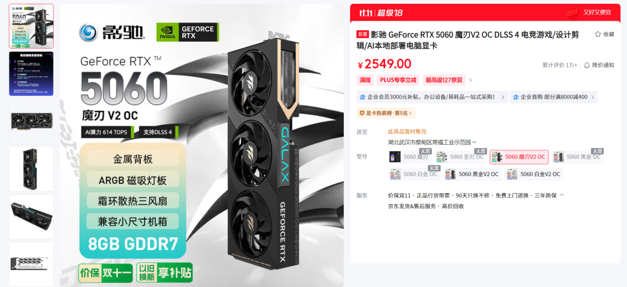 三风扇RTX5060推荐影驰 魔刃V2 OC