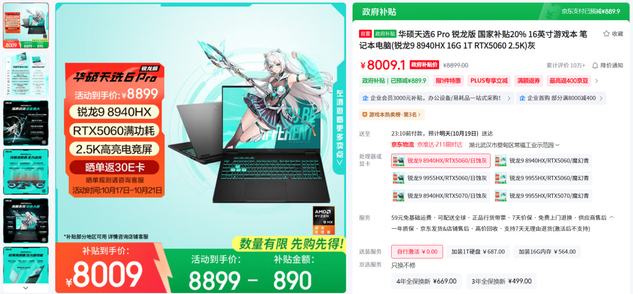 主要能蹭到“国补”,8000元左右能拿下,没有补贴的话8899元。