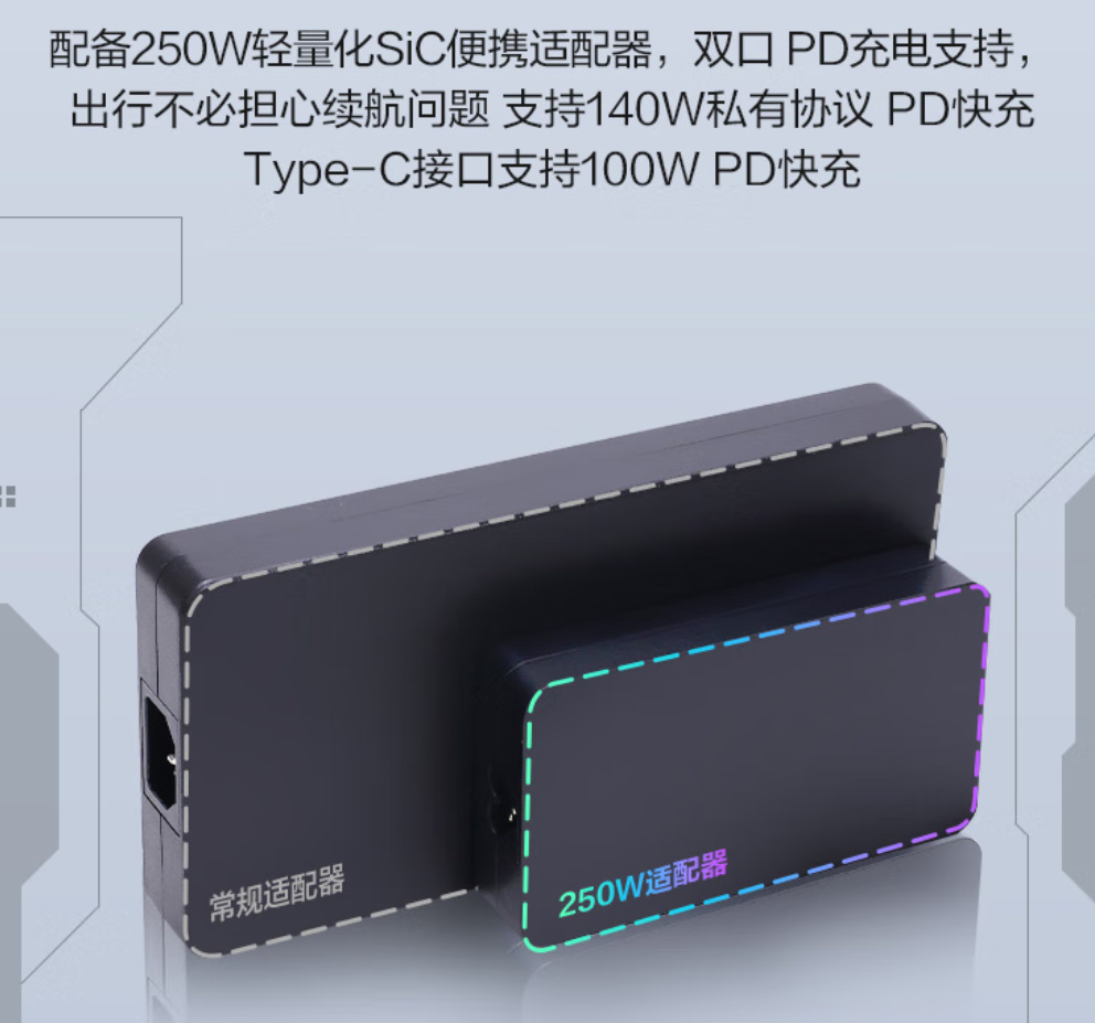 接口有3个A口、2个C口,一个C口支持140W PD私有协议,另一个支持100W PD公版。