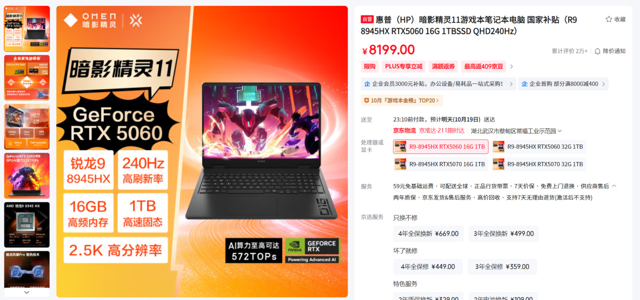 1万元能拿到R9 8945HX + 32G + 1T + RTX 5070Ti + 300Hz屏。
