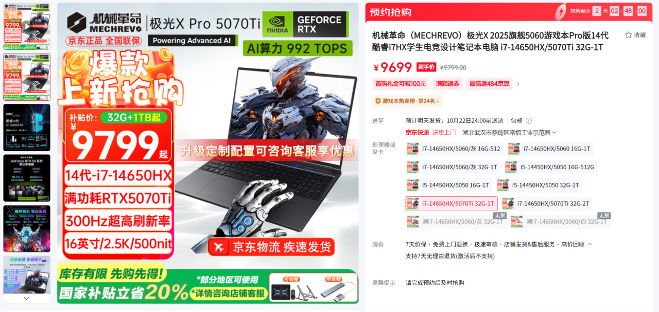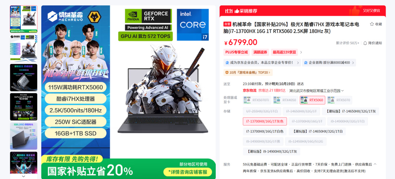 首当其冲的就是机械革命 极光X,现在6799就能拿下i7-13700HX + RTX 5060的笔记本。