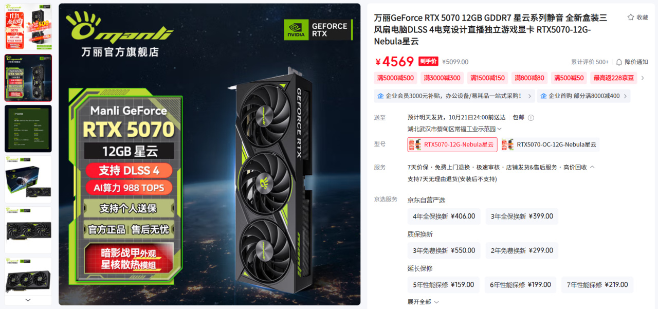 RTX 5070价格普遍在4599元,这里还是推荐万丽 星云,4569元就能拿下,还是三风扇。