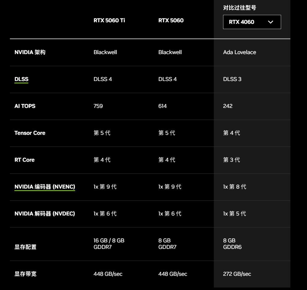 5070Ti CUDA核心数5888,5060是3328,显存升级到12G,位宽192位。