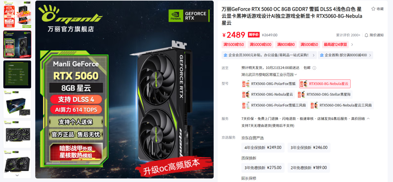 5060价格普遍在2500元,最便宜的有万丽 星云、铭瑄TRB,价格在2000出头。