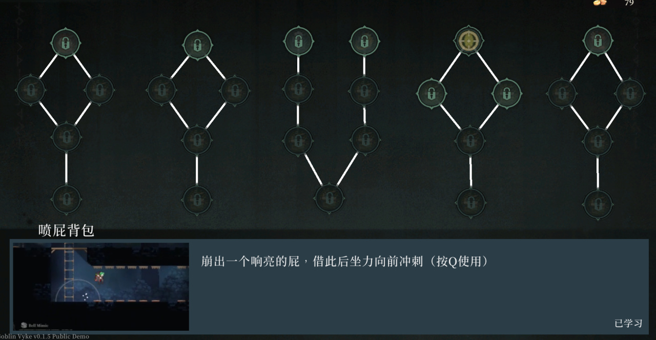 一邊我們需要通過白天賺到的金幣用來解鎖探索類的技能,比如二段跳、空中閃避之類的技能