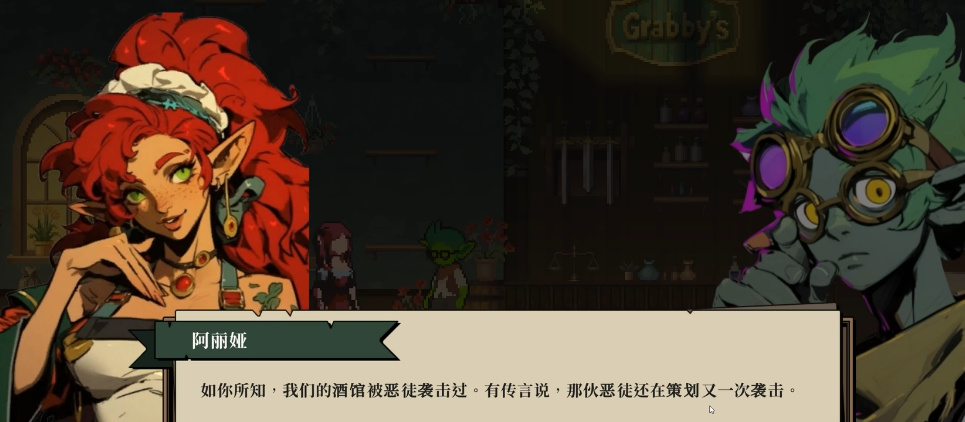 比如某天,你會遇到一位血精靈,她是隔壁酒店的老闆,曾與你父親有舊,這次她來找你買武器,是爲了報復過去打砸酒店的惡徒