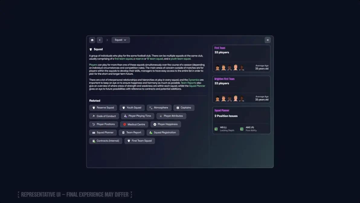 设计团队希望创造一种探索感,让玩家逐步揭示《足球经理》的深度与细节。
