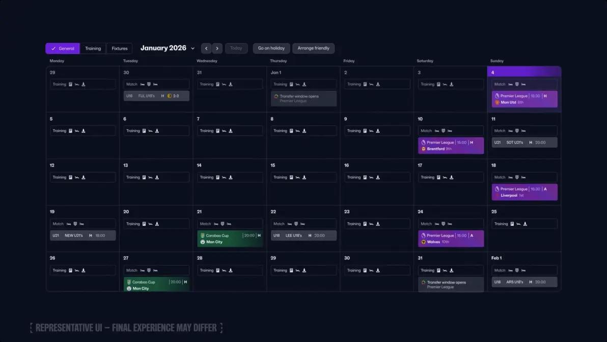 经理中心不仅仅是信息中心,它是通往整个足球世界的枢纽:比赛结果、新闻、赛程、日历等一切触手可及,也是你在 《FM 26》 中导航的核心。