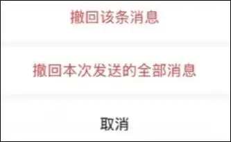 針對“誤發多條信息需逐條撤回”的痛點,微信在 iOS 端的撤回交互進行了升級——當用戶長按自己發送的消息並選擇“撤回”時,彈窗內的撤回動作被拆分爲兩項:“撤回該條消息” 與 “撤回本次發送的全部消息”。後者可一次性撤回在同一發送會話中連續發送的多條內容包括文字、圖片、語音等,極大簡化了誤發場景下的處理流程。需要注意的是,該批量撤回操作存在時效限制:必須在發送後 2 分鐘內完成撤回。