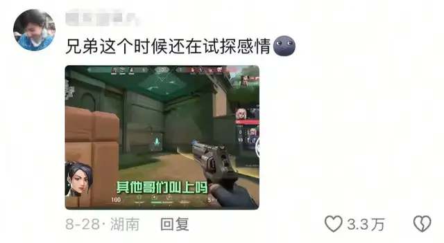 比如在一个视频里,一位大学生听到背后的舍友因为队友失误疯狂吐槽(此时还未开麦),于是她走到舍友电脑前,按下了V键(开启全队语音),刚刚还在暴躁吐槽的舍友瞬间切换成温柔的声音“可惜兄弟,这把我的。”守护人设在这一刻得到了极致的体现。