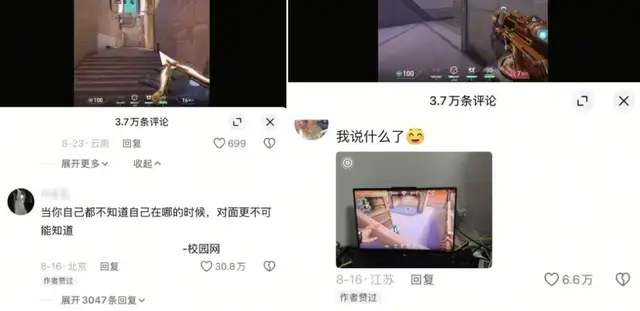 抖音上有个“在校园网神秘力量加持下,实现一对四全击杀”的瓦视频,点赞量超140万。校园网网速过差是所有大学生在学校打游戏都经历过的伤痛,并不局限某一款游戏,但带图留言的几乎清一水都是在学校打瓦遇到的情况。
