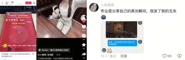 还有教材从C程序设计“魔改”为了C无畏契约;老师让交“高光时刻”的作业,发过去的是自己剪的“无畏时刻”视频;就连减肥,也会被大学生理解为是瓦帮助了自己“少吃”……