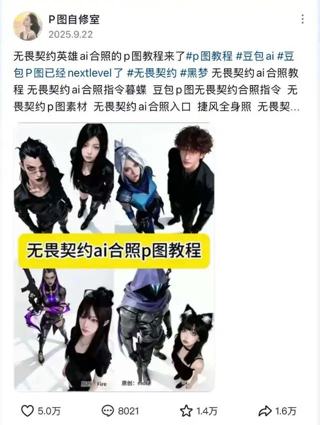 当男大、女大都成了“瓦大”,越来越多人被带动加入了瓦延伸出的社交新玩法,比如很多女大在个人账号发“以瓦奶妈技能改编的简单手势舞”,再比如前段时间通过AI实现与游戏角色合影玩法爆火,玩瓦的大学生也是参与其中最活跃的一批人。
