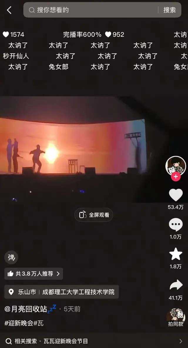 如果说上面的都还算正常,当下面这位同学在迎新晚会上表演了最近爆火的捷风“颗秒”表情包,一个几秒的视频爆发了超过50W的点赞,堪称恐怖。