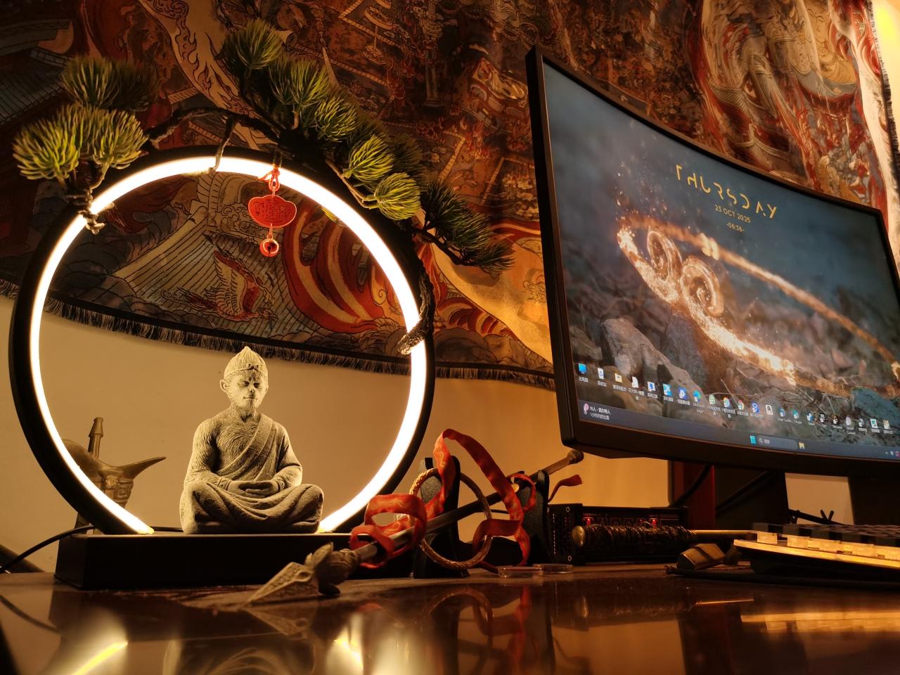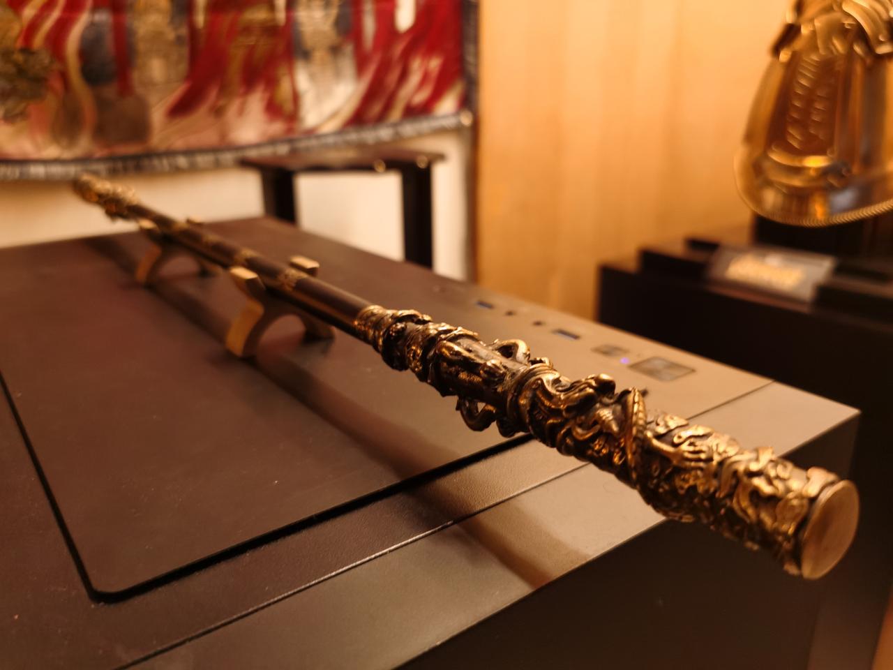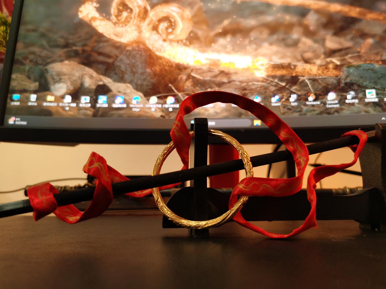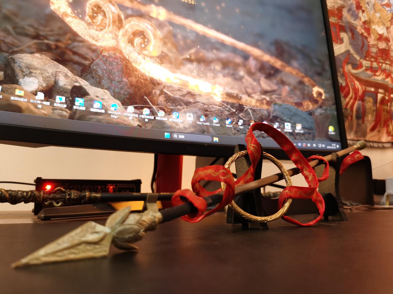 顯示器下面是黑神話悟空同款的金箍棒