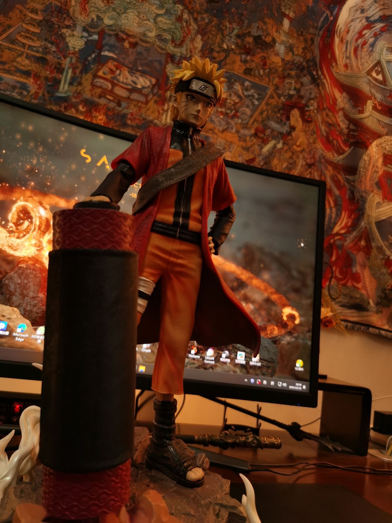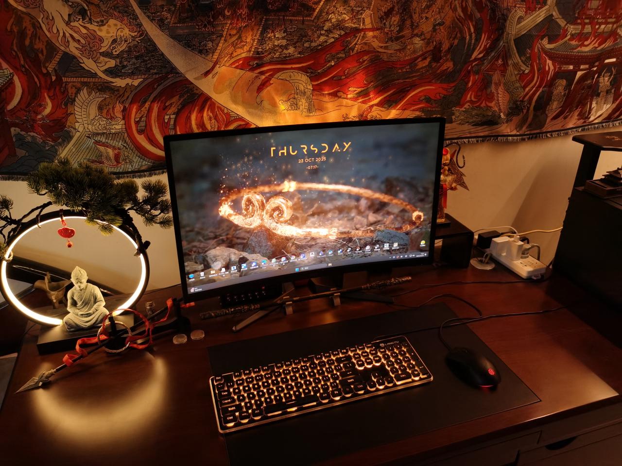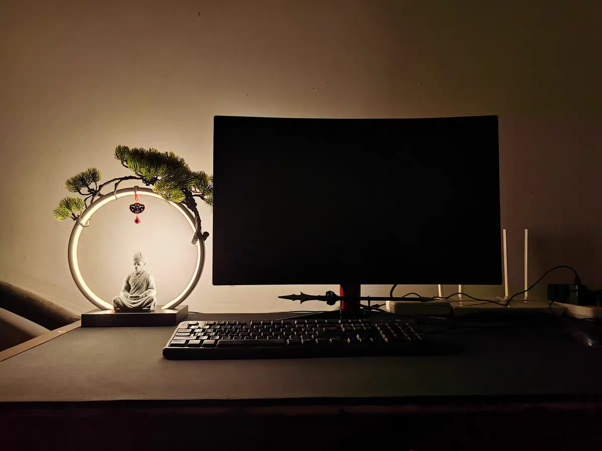 顯示器下面是黑神話悟空同款的金箍棒