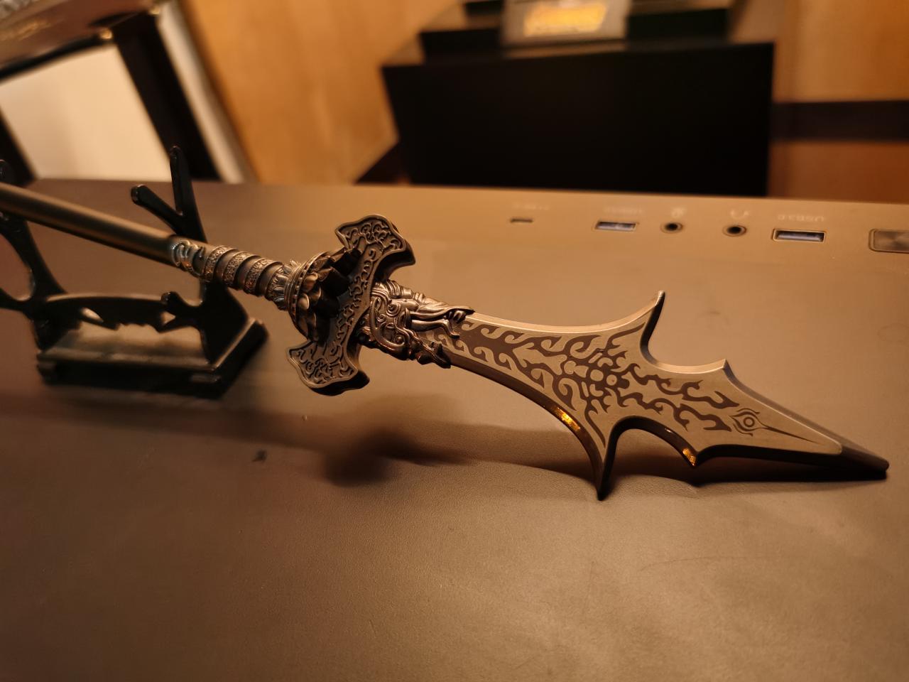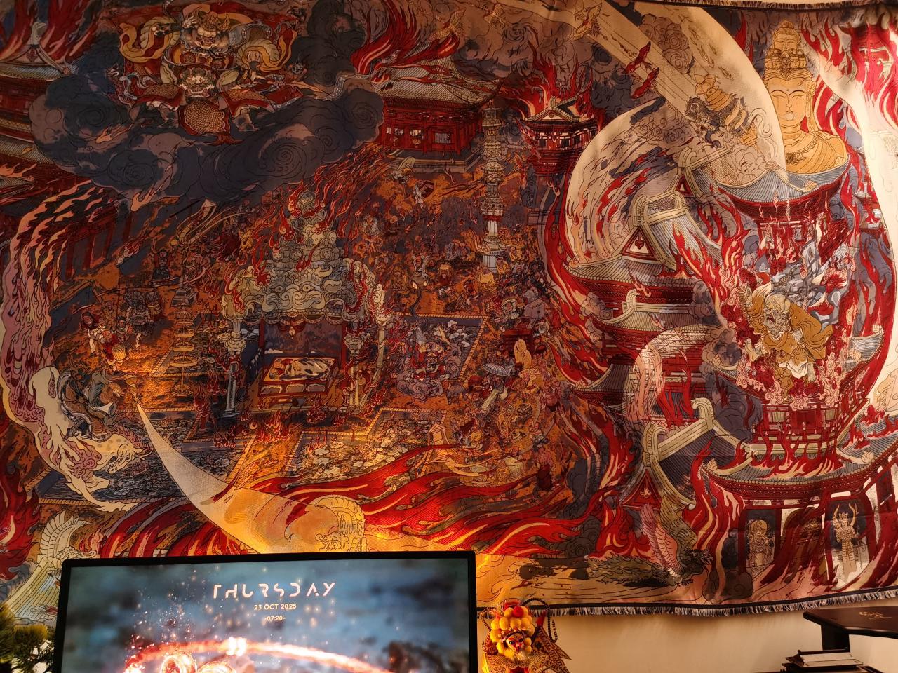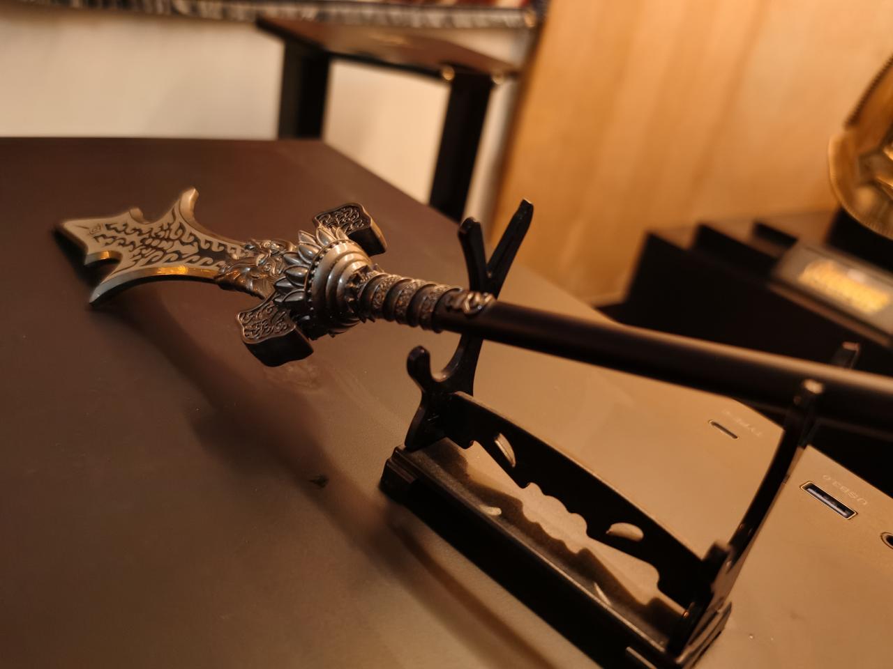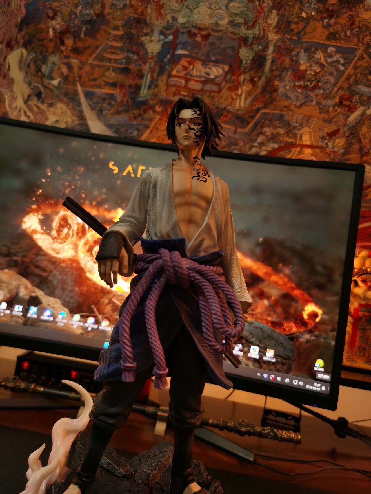 顯示器下面是黑神話悟空同款的金箍棒