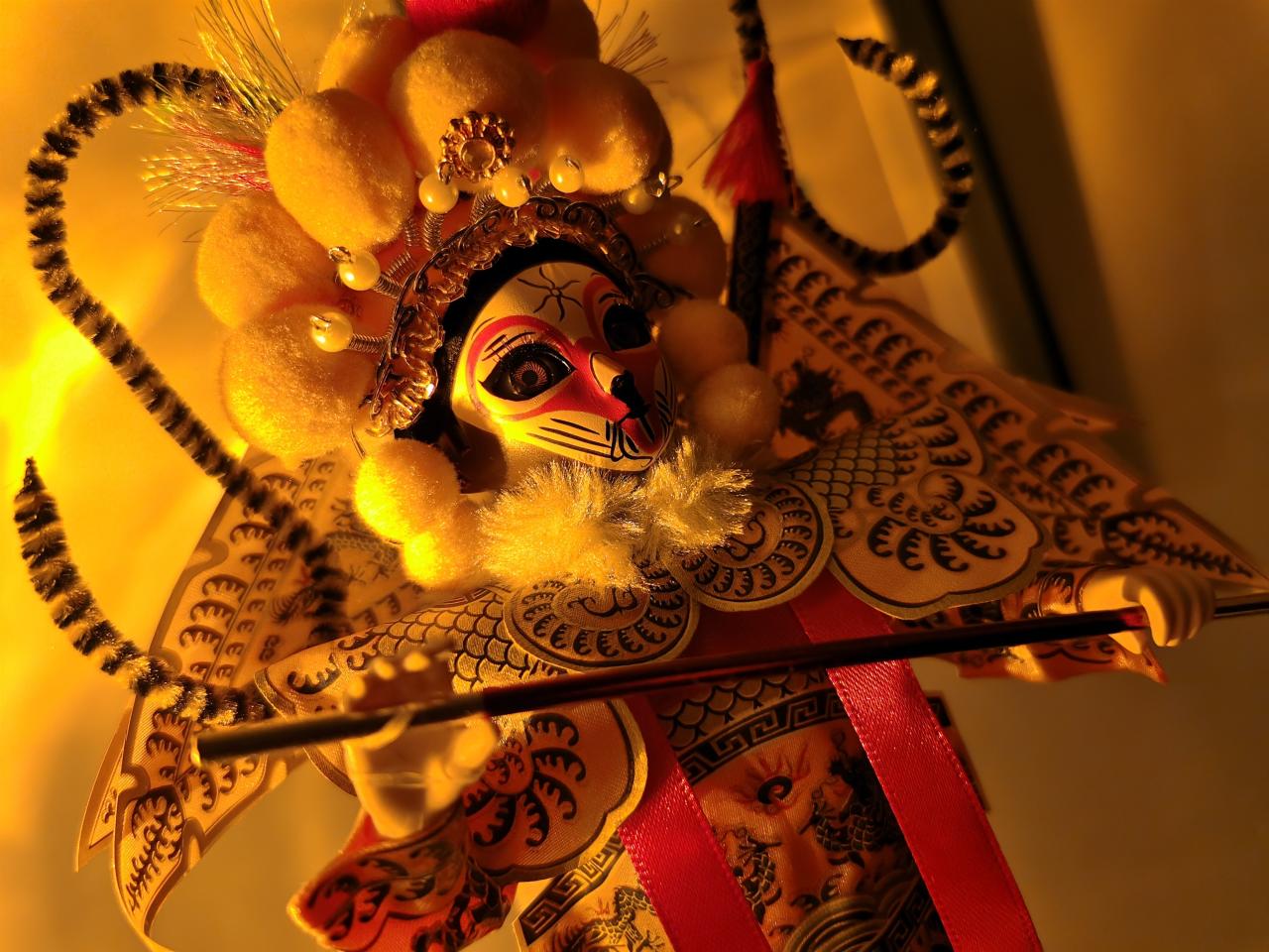 燈圈中間擺的是青砂石孫悟空