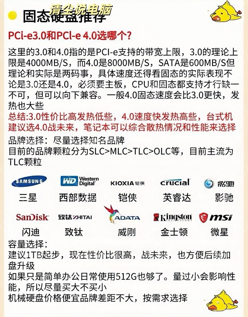 ·系统盘/游戏盘:选NVMe固态硬盘,加载速度快