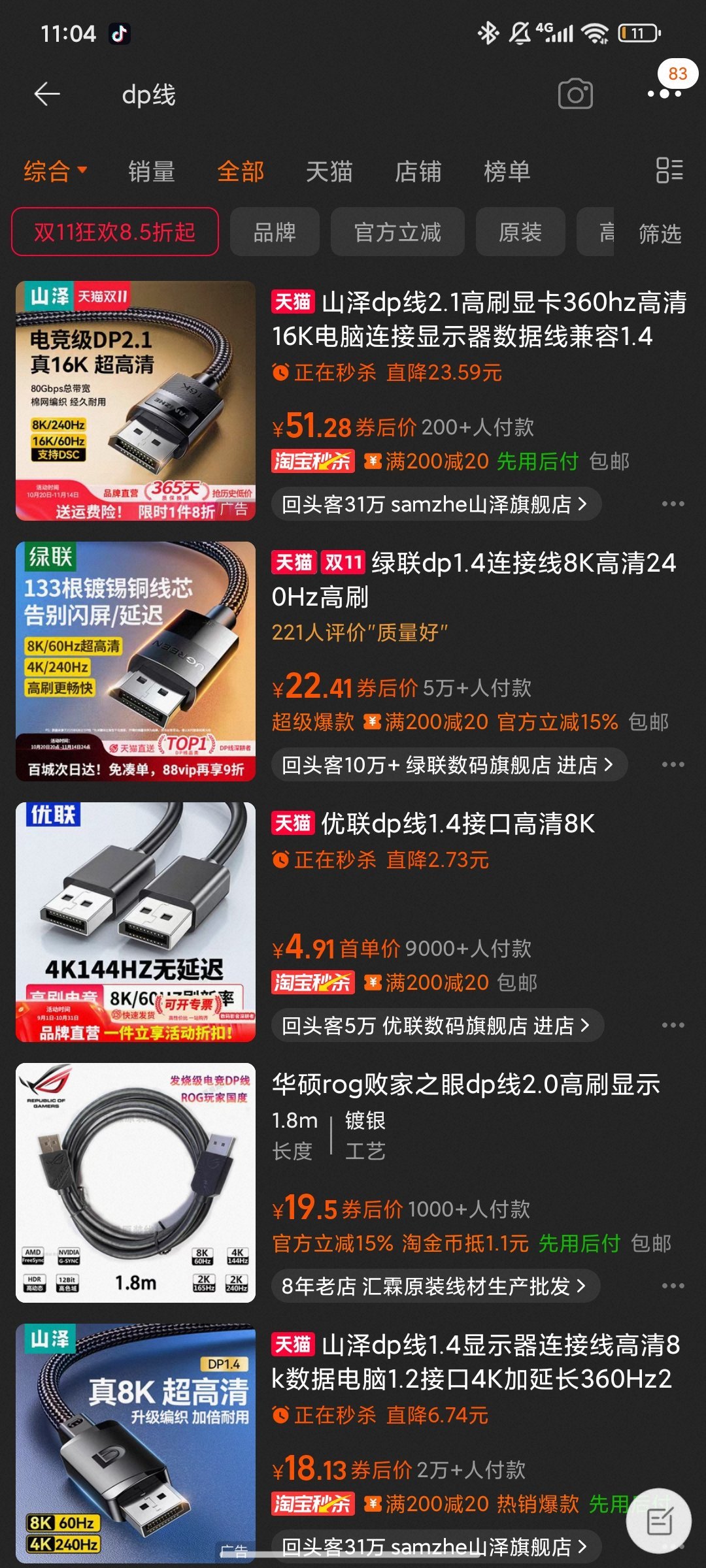 之前显示器原装的dp线不见了,后面为了配一根靠谱的DP线,我踩过的坑能排半条街——先是图方便买了淘宝首页款,感觉虽然外观很好吧。有时候还会出现黑屏的连接不稳的情况(某联,不知道怎么说你了)而且参数标的是满血DP 1.4,网上一搜全是吐槽带宽根本没达标