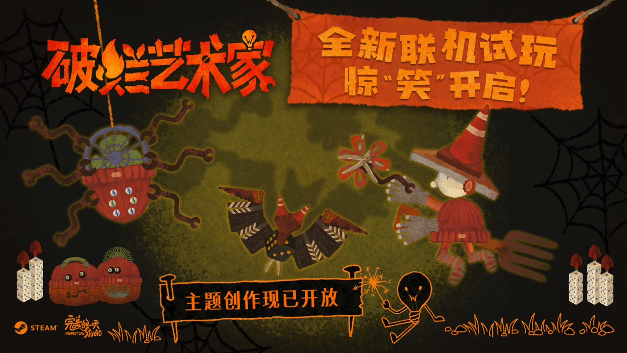 继推出火爆全网的剧情解谜游戏《完美的一天》和《失眠》后,完美的一天工作室的全新作品——“你拼我猜”多人游戏《破烂艺术家》,现已在Steam上开放全新限时试玩Demo2.0,欢迎各位艺术家前来体验!