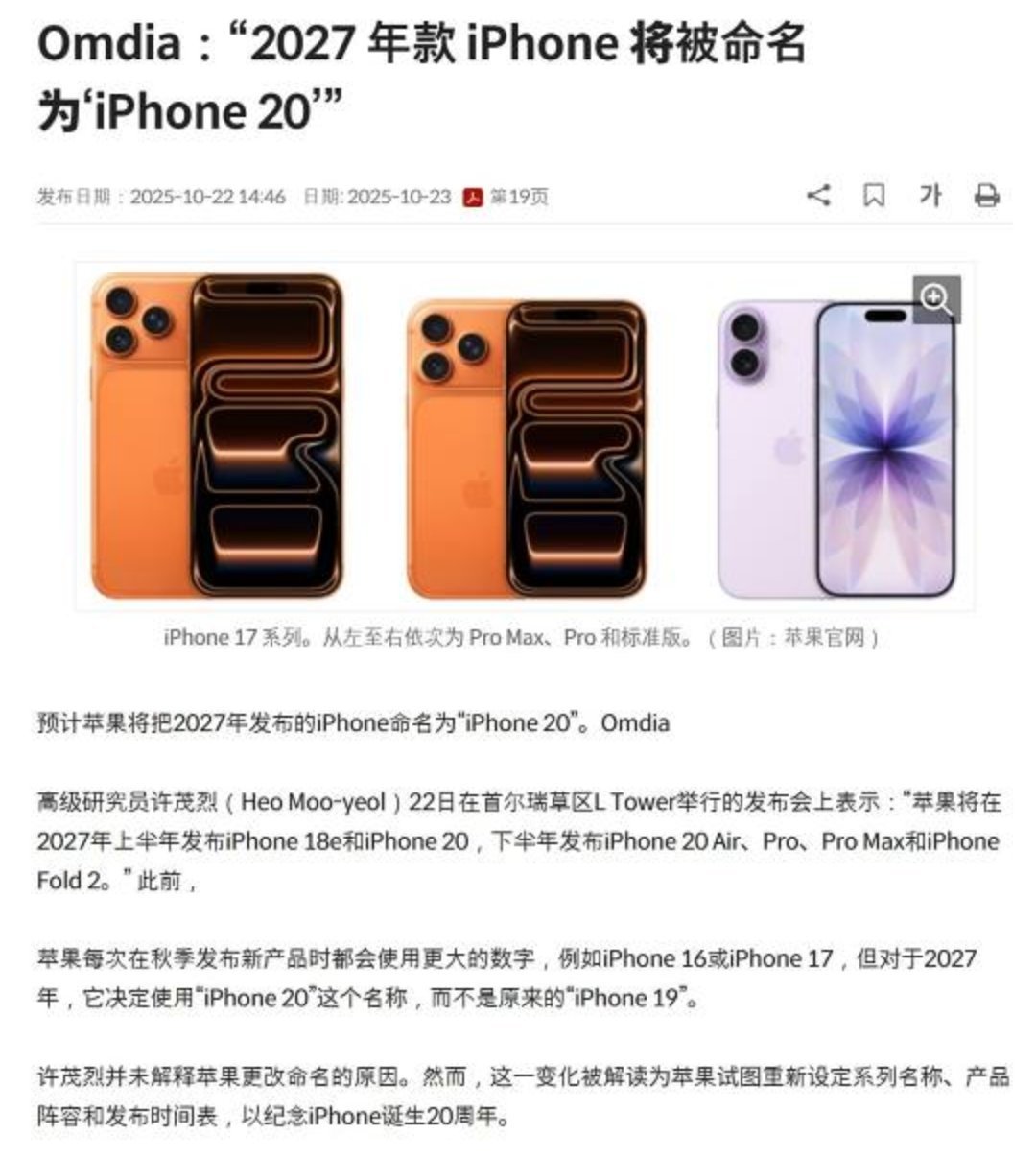 大家今天应该也看到不少科技消息说iPhone将在2027年直接跳过iPhone19,直接发布iPhone20,这个消息说这将是20周年纪念款手机,所以直接发布为iPhone20。
