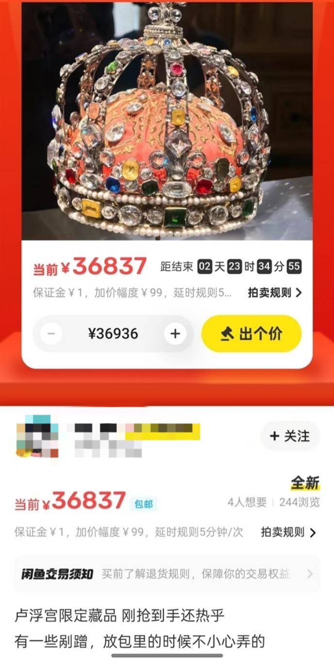 这些售卖链接包括标注为“卢浮宫正品王冠”等商品,甚至有卖家玩起“盗亦有道,有点烫手”的黑色幽默。闲鱼客服回应称,平台已通过大数据多维度监测此类信息,建议用户直接点击页面举报,由人工专员审核处理。卢浮宫盗抢案中,4名蒙面劫匪利用升降装置潜入博物馆,7分钟内盗走8件具有无法估量历史价值的皇家珠宝,经济损失预估达8800万欧元。法国文化部确认这些文物因法律规定和投保成本原因未购买保险。