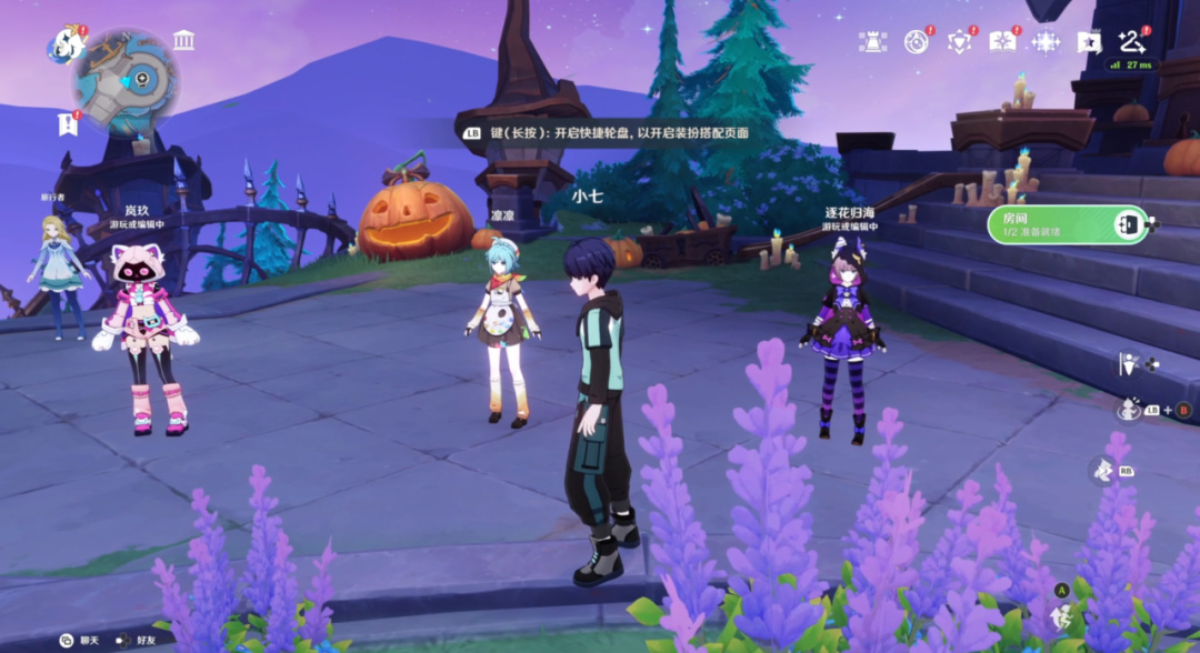 奇偶创作完毕后就会进入游戏大厅,在这里可以看到很多其他玩家,这是在此前弱联网的《原神》中极难见到的场面,玩家们可以在此聊天、组队、一同游戏。