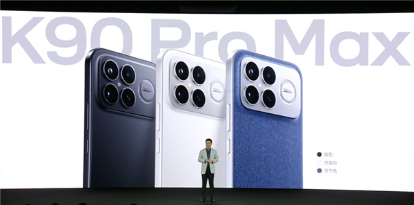 外观设计上,REDMI K90 Pro Max采用航空级铝金属边框,搭配3D玻纤、科技丹宁等多元材质,提供黑色、流金白、丹宁色三款配色,背部有Sound by BOSE标识。
