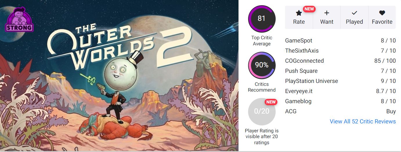 Opencritic(收录52家媒体评分,OpenCritic81分,推荐指数90%)