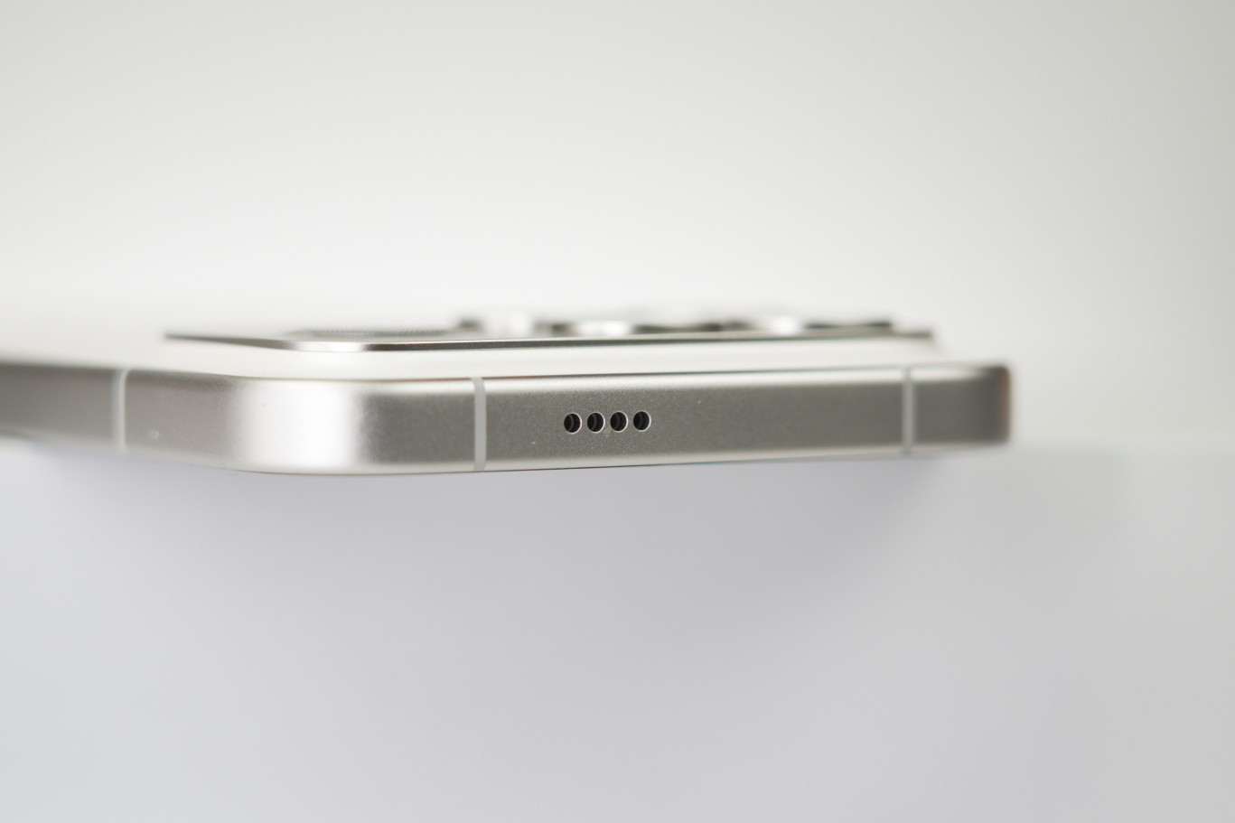 雖然紅米K90 Pro Max沒有副屏,但依舊有花活,在橫向矩陣的右側設計了一個2016雙音圈揚聲器,外殼採用和金屬DECO同樣的鋁合金材質,並且在細密的揚聲器開孔中央絲印了Sound by BOSE字樣。