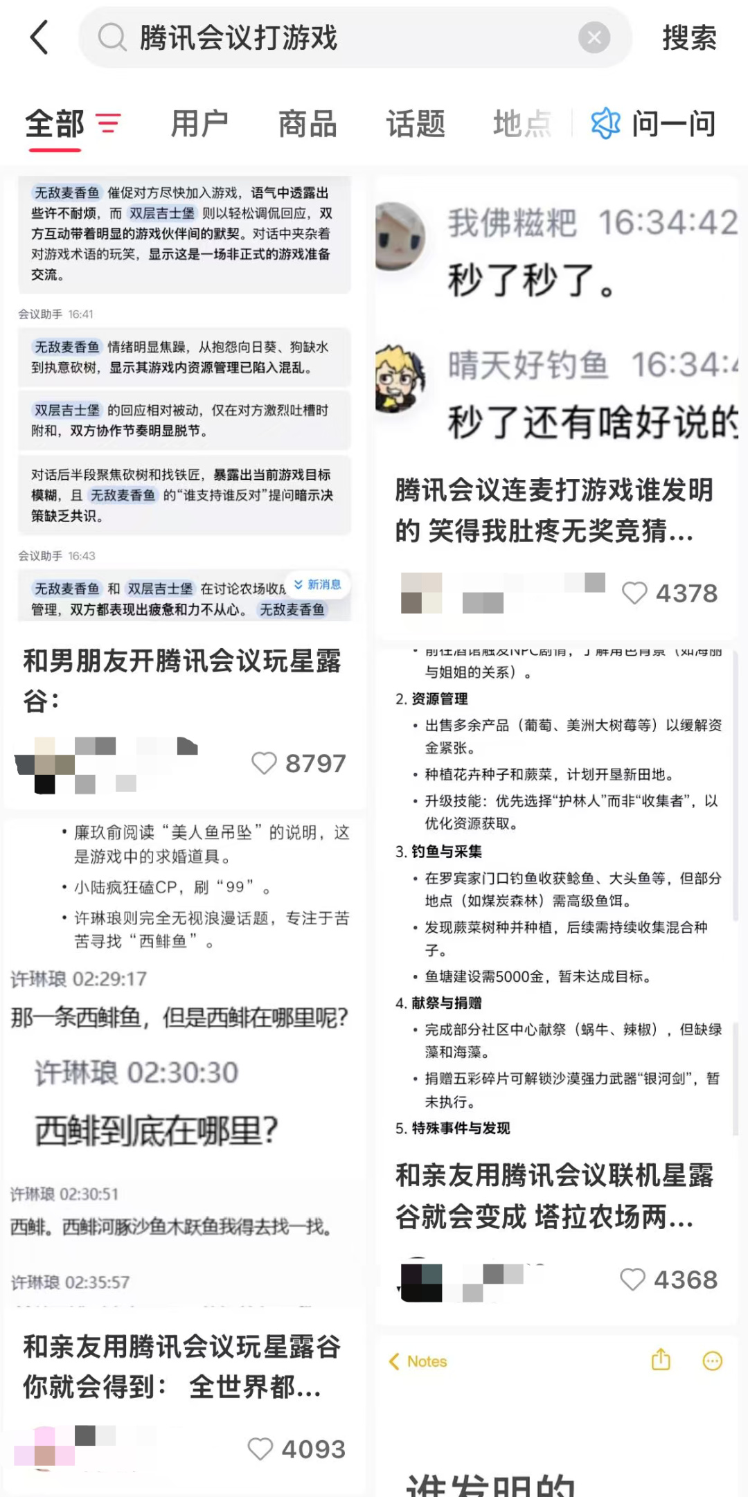 早幾年疫情期間,騰訊會議等辦公軟件實則就被年輕人開發出玩桌遊、談戀愛、連麥看劇、直播遊戲等新用途,歸根結底也是滿足大家長期居家隔離滋生的社交想法。如今在原有功能基礎上,AI紀要等功能的更新再次刷新騰訊會議帶來的使用體驗,也促使年輕用戶發掘出這款應用的更多打開方式。